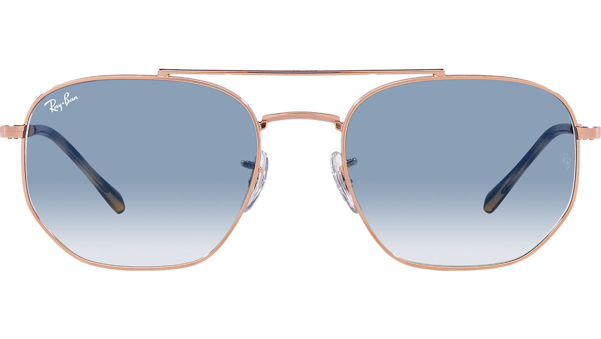 Ray-Ban Evolution line RB3707 sunglasses model RB3707 color code 92023F featuring rose gold full rim metal frame and glass blue lenses. Ray-Ban stands for timeless style, simplicity, and freedom of expression. As a leading eyewear brand for generations, Ray-Ban has been at the forefront of cultural change, symbolizing individuality and personality. Since its debut with the iconic Aviator, originally created for US aviation pilots, Ray-Ban has been worn by celebrities and public figures worldwide, becoming a symbol of style and sophistication.