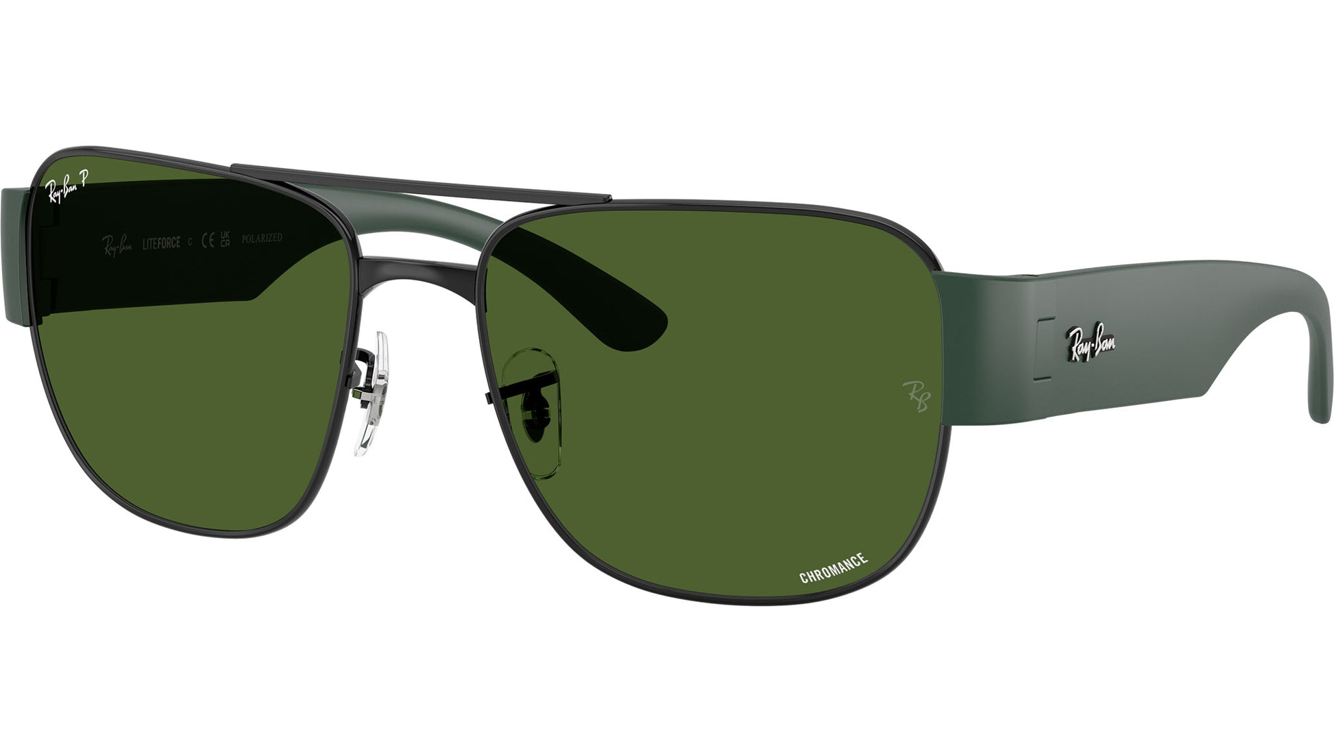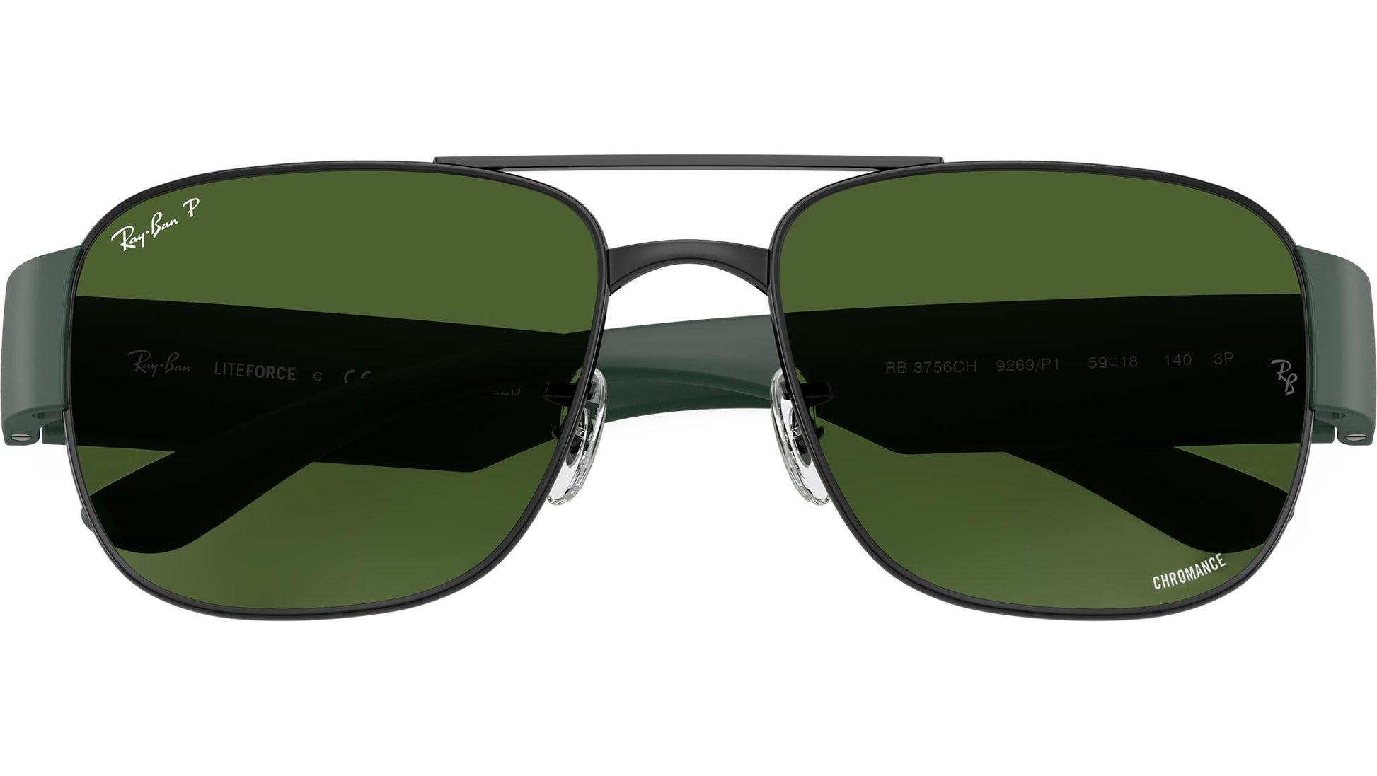 Ray-Ban RB3756CH RB3756CH 9269P1 sunglasses for men and woman, featuring black squared metal frame and polar dark green glass lenses. Adjustable nosepads. Brand line: Performance. Style code: 0RB3756CH. Color code: 9269P1. Authorized Ray-Ban online reseller. Your glasses will include the original case and accessories and are covered by a 12-month global warranty.