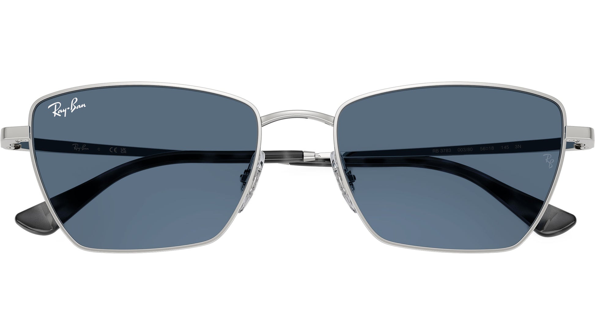 Ray-Ban RB3783 003/80 sunglasses for men and woman, featuring silver geometric metal frame and dark blue bio polyamide lenses. Brand line: Nowness. Style code: 0RB3783. Color code: 003/80. Authorized Ray-Ban online reseller. Your glasses will include the original case and accessories and are covered by a 12-month global warranty.