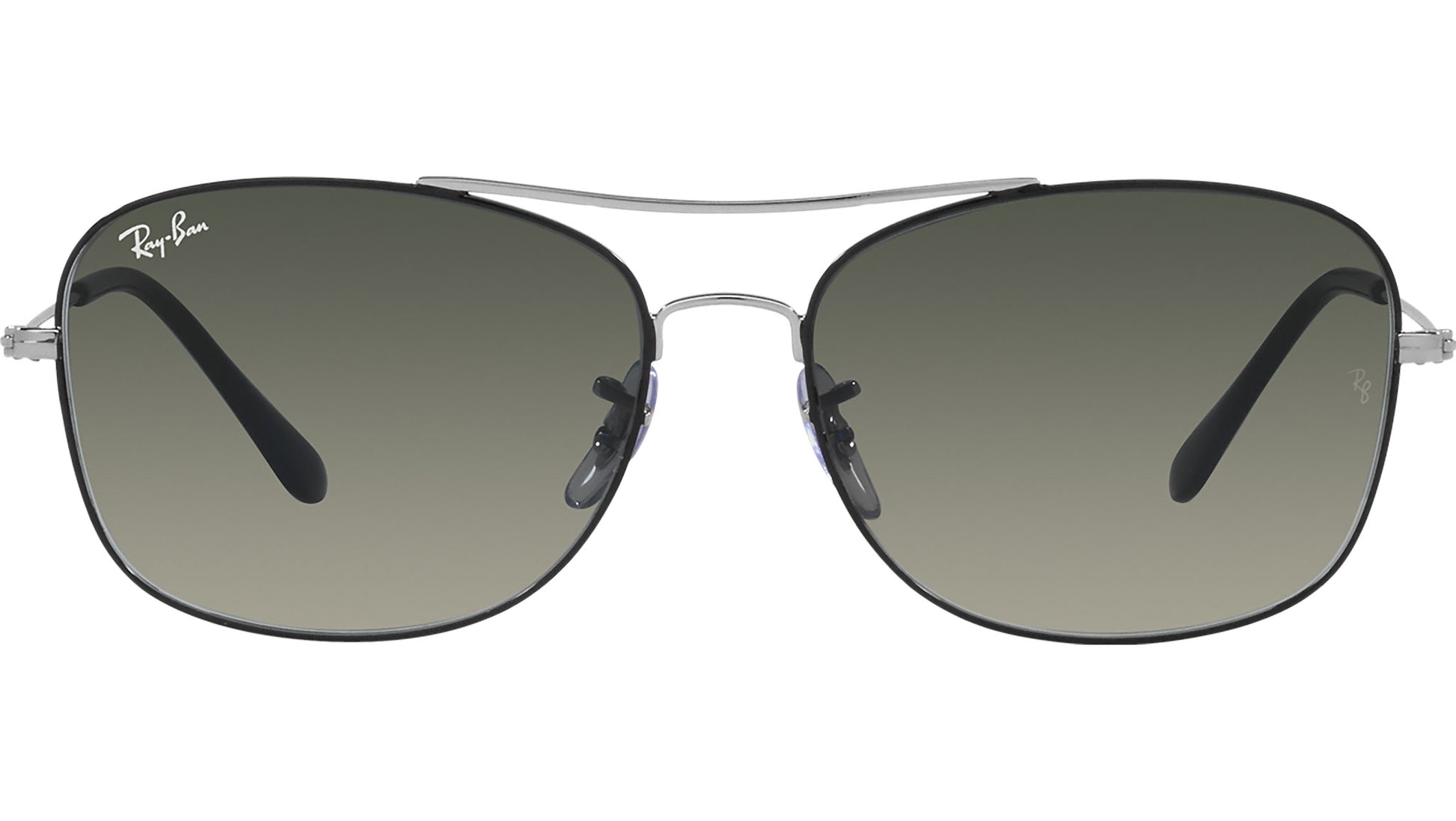 RB3799 914471 black on silver, metal frame, metal temple, featuring grey gradient glass lens.