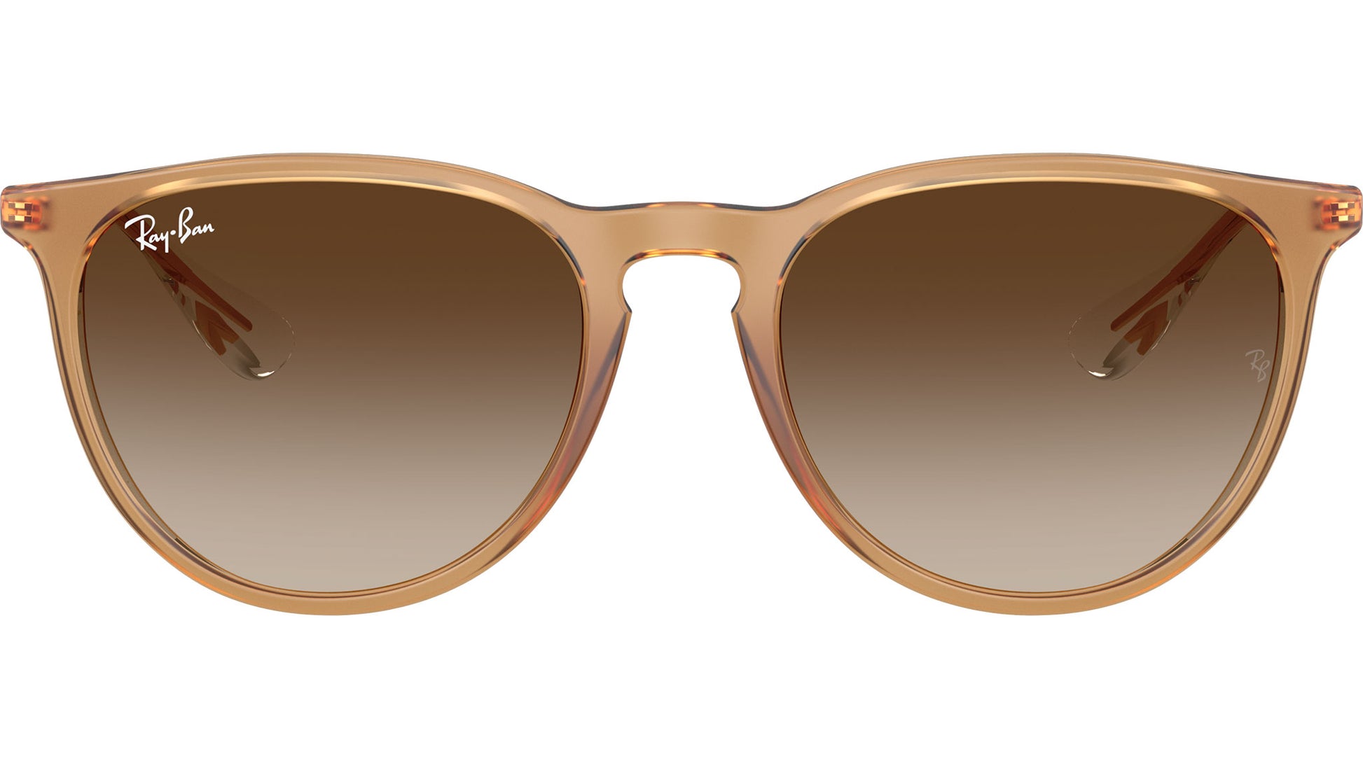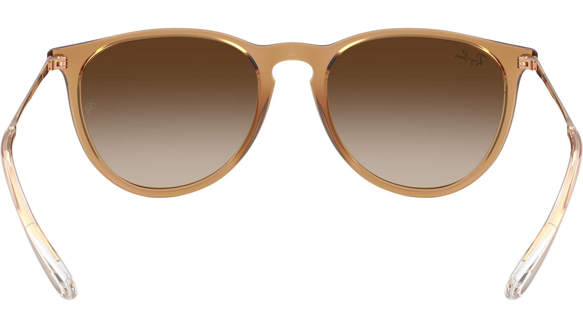 Ray-Ban Erika RB4171 681413 sunglasses for women, featuring rubber beige panthos nylon frame and gradient brown polycarbonate lenses. High bridge fit. Brand line: Essentials. Style code: 0RB4171. Color code: 681413. Authorized Ray-Ban online reseller. Your glasses will include the original case and accessories and are covered by a 12-month global warranty.