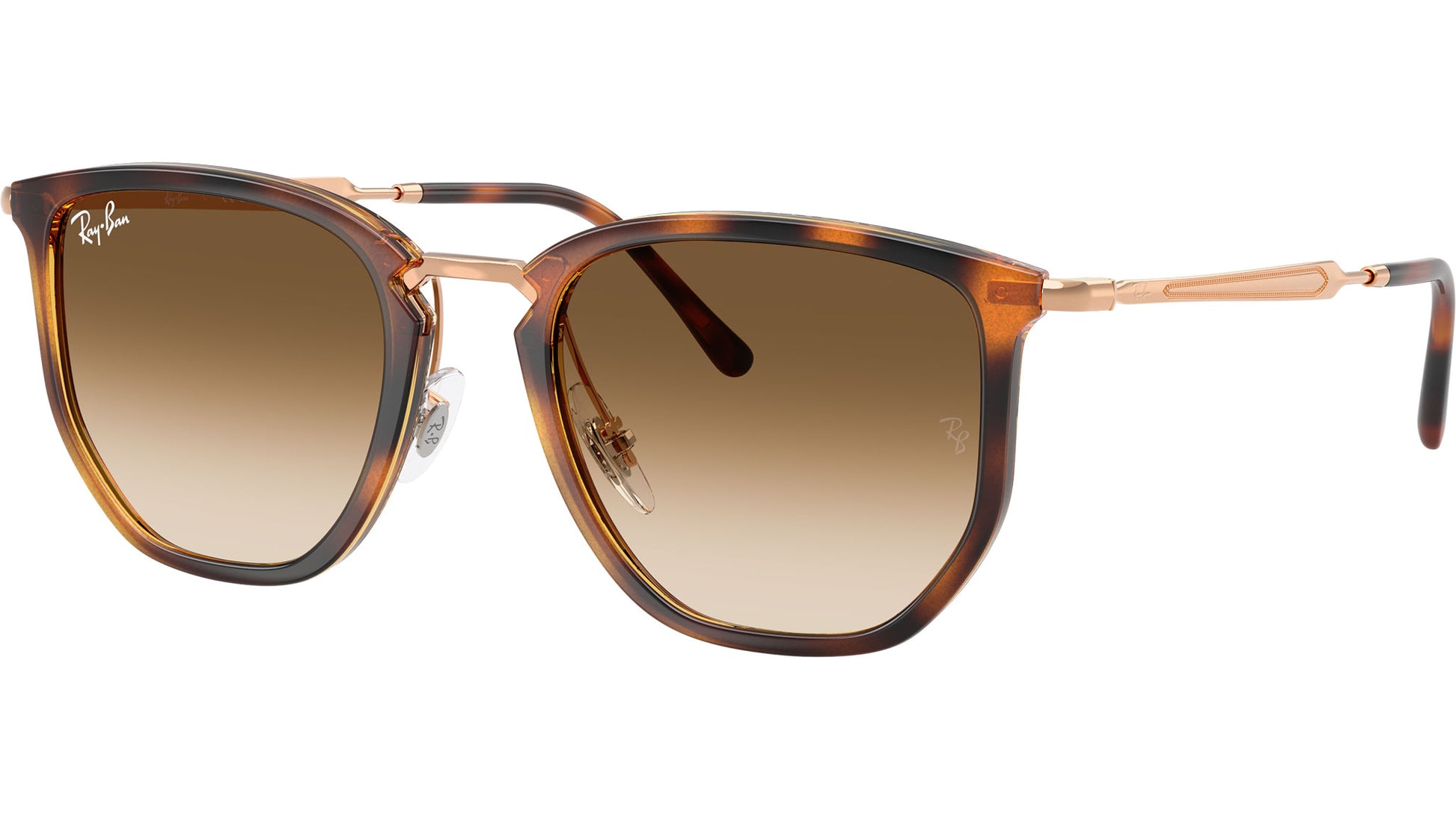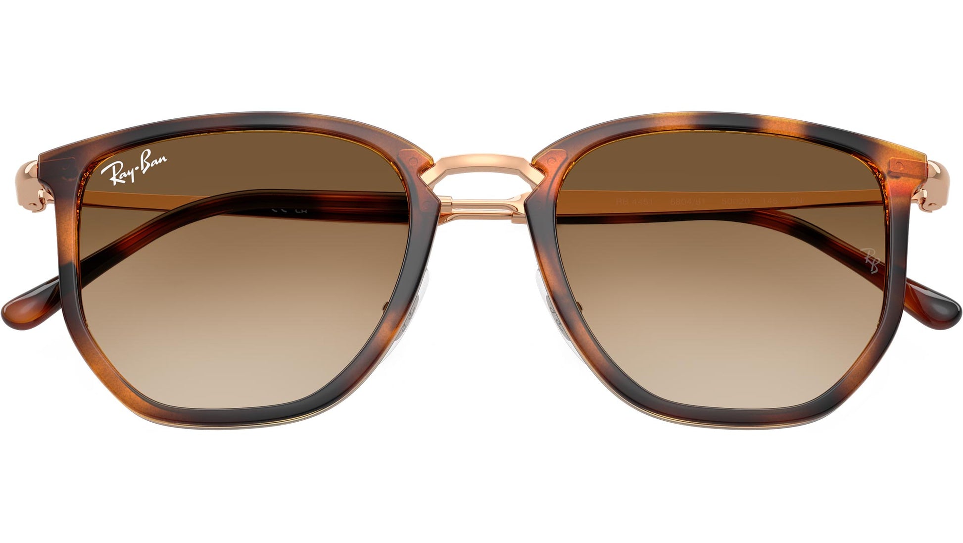 Ray-Ban RB4451 RB4451 680451 sunglasses for men and woman, featuring transparent orange geometric nylon frame and clear gradient brown glass lenses. Adjustable nosepads. Brand line: Core. Style code: 0RB4451. Color code: 680451. Authorized Ray-Ban online reseller. Your glasses will include the original case and accessories and are covered by a 12-month global warranty.