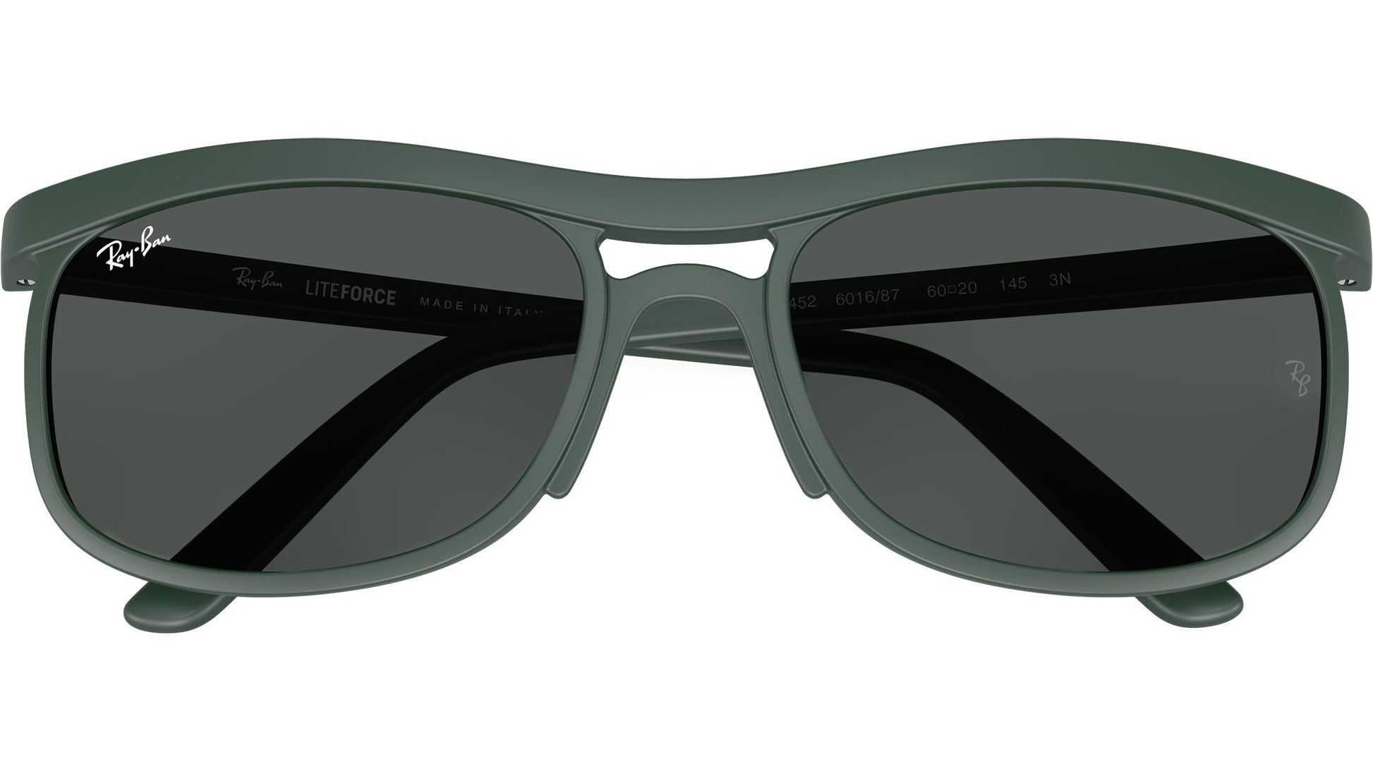 Ray-Ban RB4452 RB4452 601687 sunglasses for men and woman, featuring sand green squared peek frame and dark grey polyamide lenses. High bridge fit. Brand line: Performance. Style code: 0RB4452. Color code: 601687. Authorized Ray-Ban online reseller. Your glasses will include the original case and accessories and are covered by a 12-month global warranty.