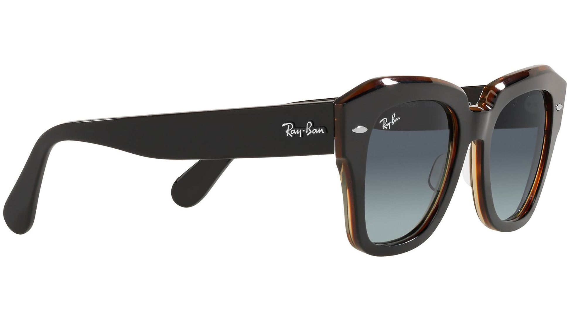 The Wayfarer family continues with the Statestreet. Its elegant, squared shape, crafted from acetate and available in a selection of colours, creates a contemporary style. Dare to wear them in a range of colours, including solid and bilayer options, combined with classic, gradient or polar lenses. The on-trend acetate temple tips and Ray-Ban logo complete the picture.