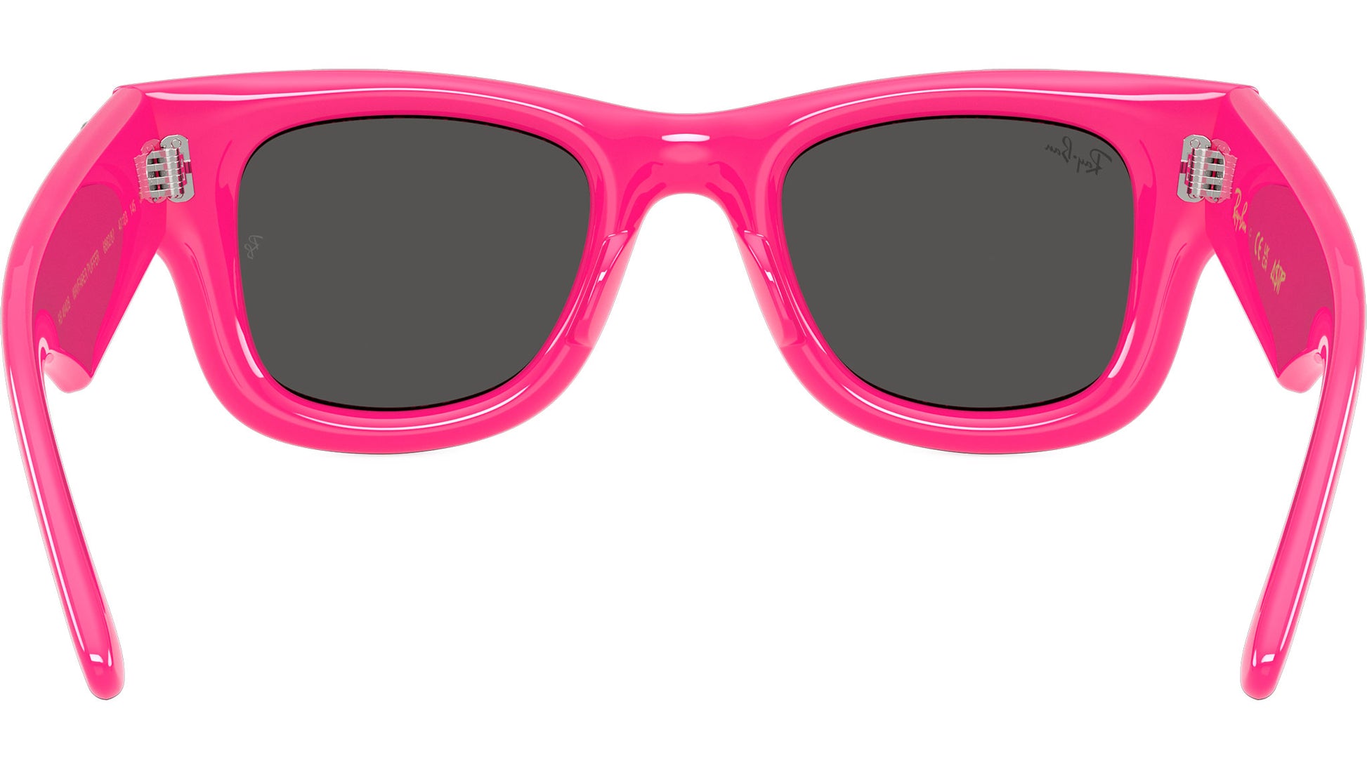 Ray-Ban Wayfarer Puffer RB4940B 686287 sunglasses for men and woman, featuring pink & strass squared nylon frame and dark grey bio polyamide lenses. Created under the artistic direction of A$AP Rocky, the Wayfarer Puffer from the Blacked Out collection reinterprets a Ray-Ban classic with a bold aesthetic. This edition features pavé strass exclusively on the Ray-Ban logos located on both temples, adding a subtle sparkling accent to the frame. The pink squared nylon architecture emphasizes volume and geometric presence, while sculpted temples and signature metal rivets reinforce the model’s distinctive identity. Paired with dark grey bio polyamide lenses, the sunglasses deliver clarity, contrast, and contemporary style, bridging streetwear attitude with high-fashion appeal. High bridge fit. Brand line: Evolution. Style code: 0RB4940B. Color code: 686287. Authorized Ray-Ban online reseller. Your glasses will include the original case and accessories and are covered by a 12-month global warranty.