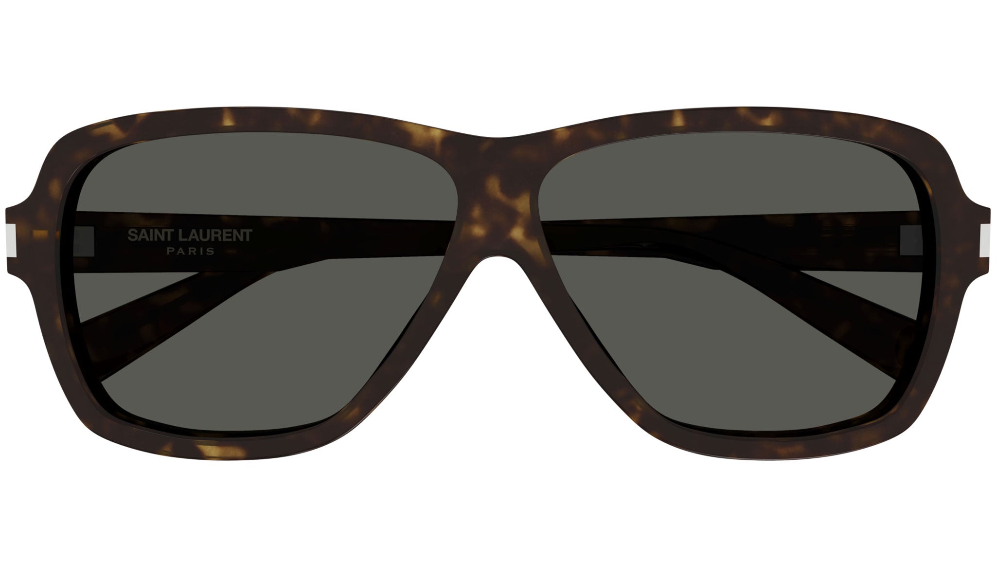 Saint Laurent sunglasses model SL 609 CAROLYN from New Wave eyewear line, color code 002 shiny dark havana recycled acetate, aviator frame shape with solid grey lens.