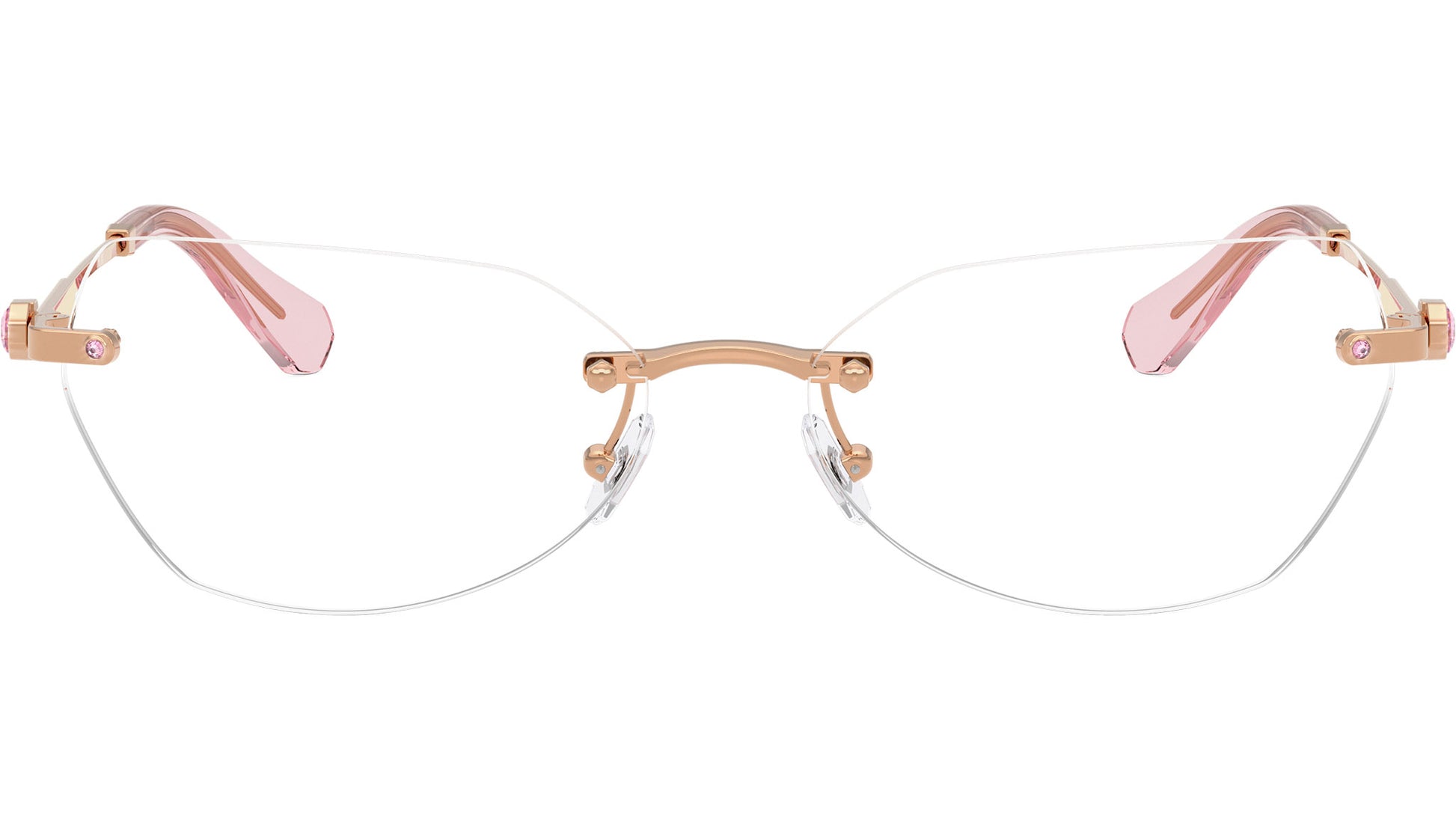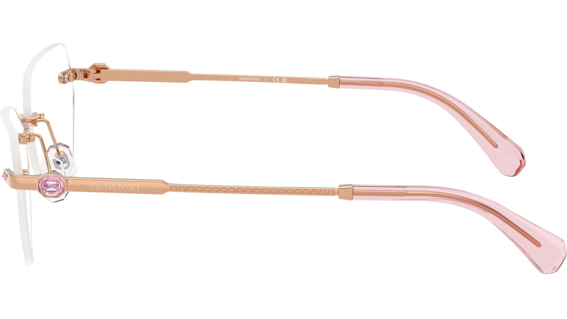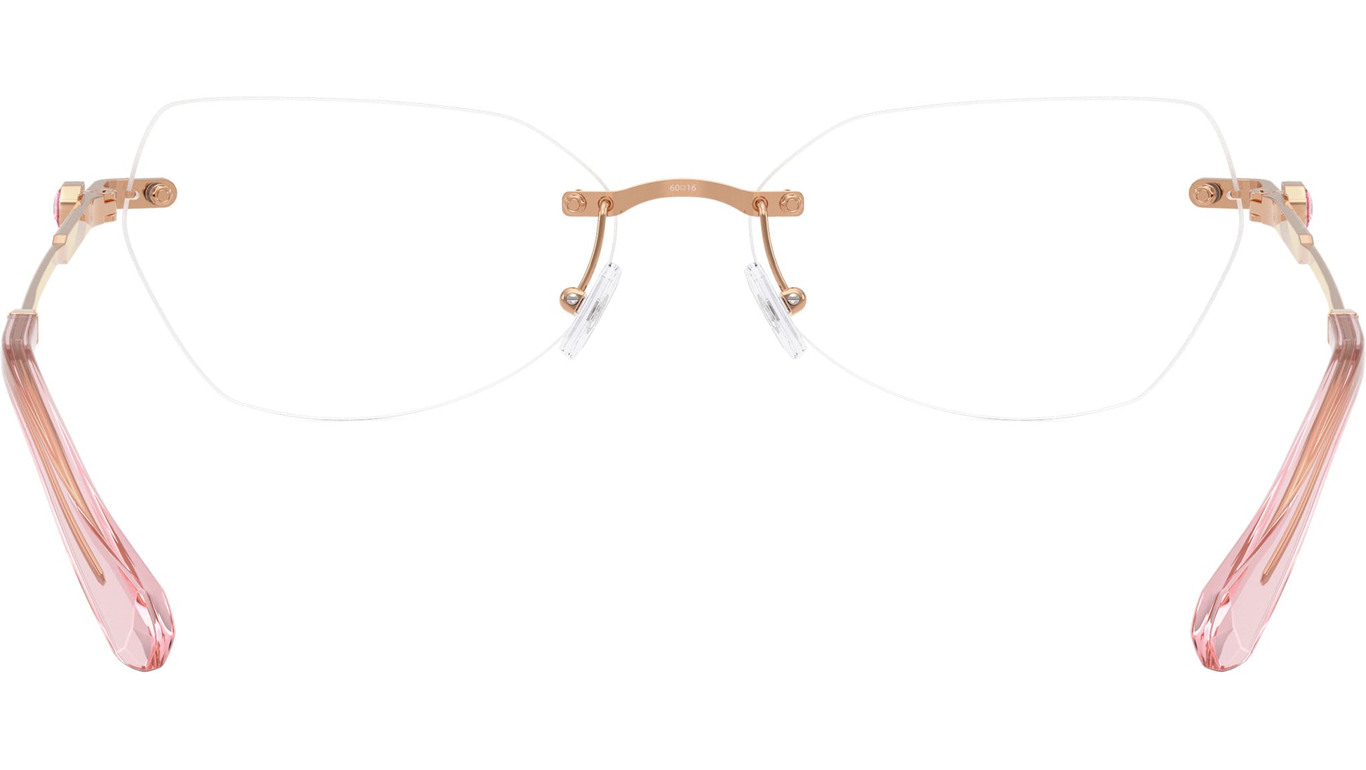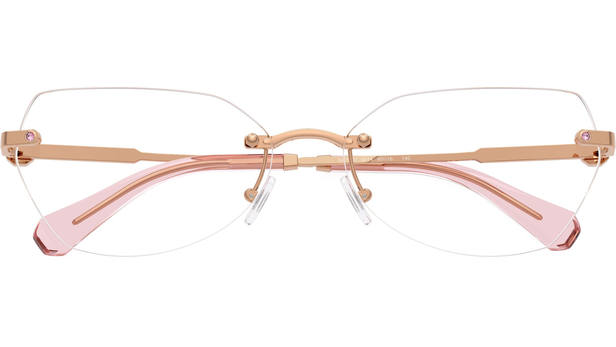 Swarovski SK1031 4014 glasses for women, featuring rose gold geometric metal frame and demo lenses. Adjustable nosepads. Brand line: Science of Facets. Style code: SK1031. Color code: 4014. Authorized Swarovski online reseller. Your glasses will include the original case and accessories and are covered by a 12-month global warranty.