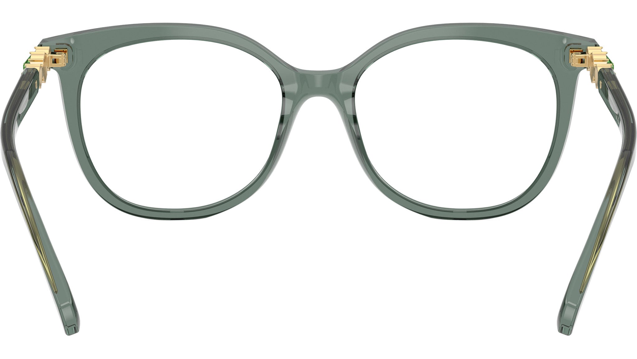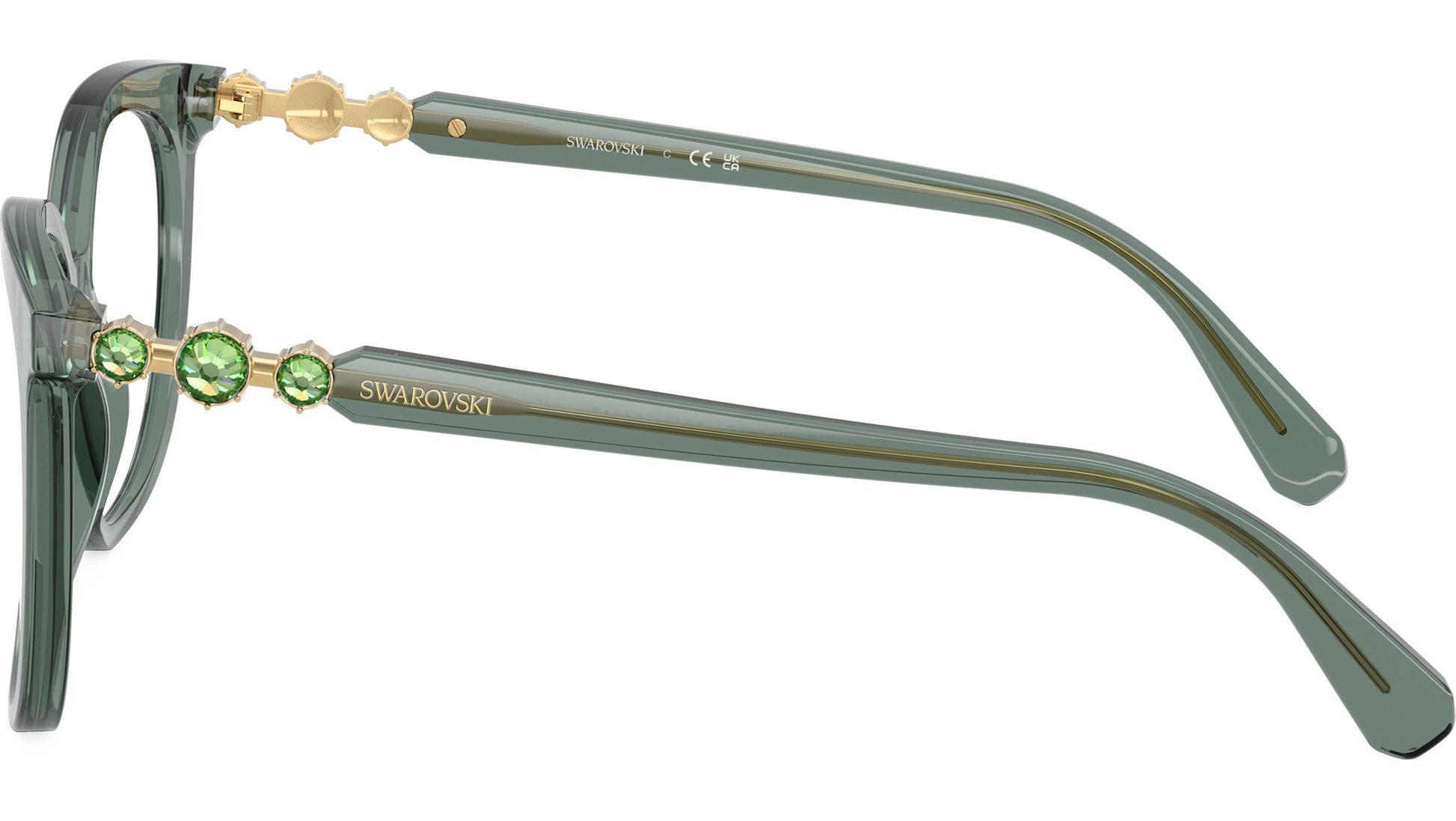 Swarovski SK2055 1043 glasses for women, featuring transparent green panthos acetate frame and demo lenses. High bridge fit. Brand line: Science of Elegance. Style code: SK2055. Color code: 1043. Authorized Swarovski online reseller. Your glasses will include the original case and accessories and are covered by a 12-month global warranty.