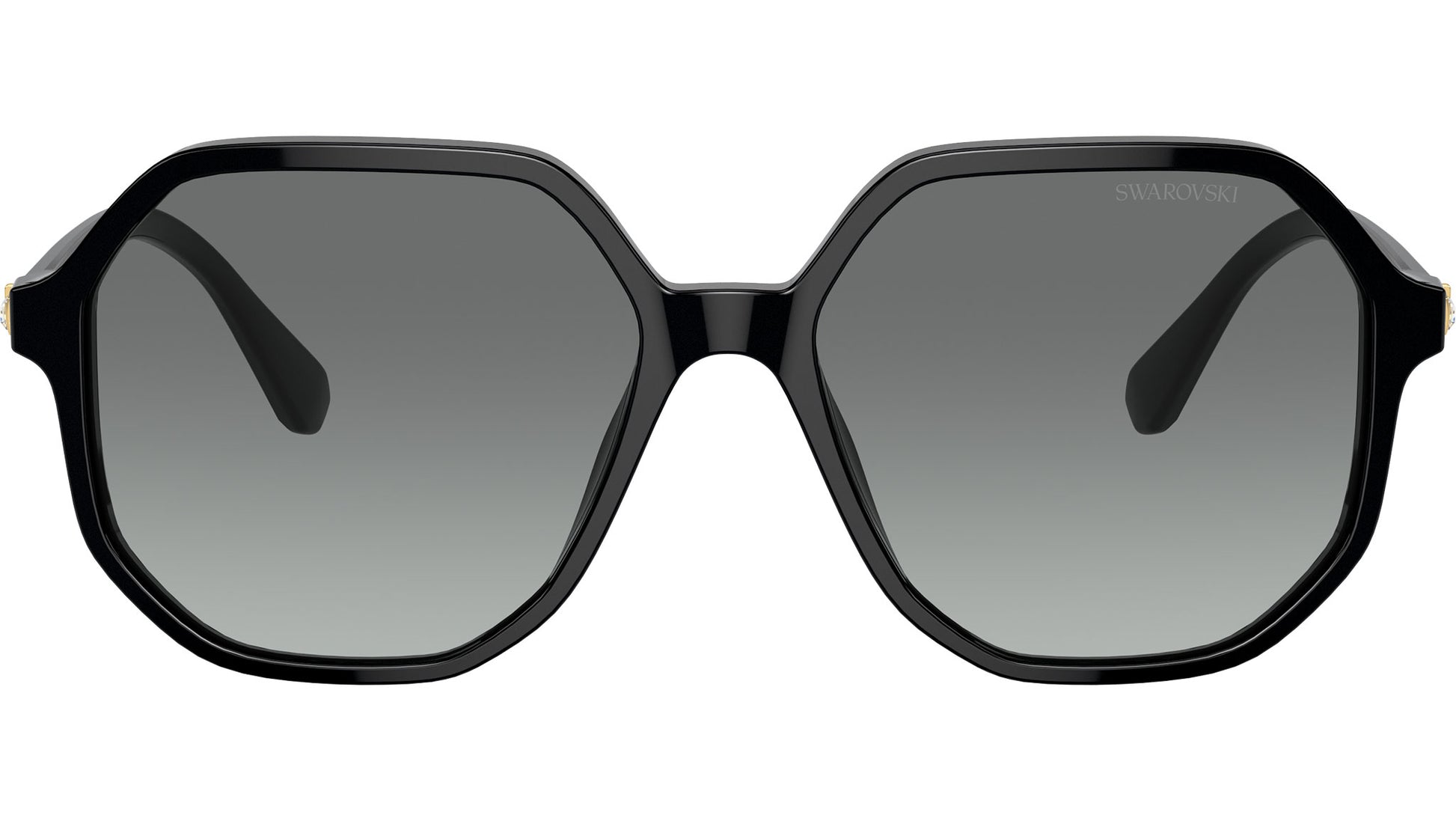 Swarovski sunglasses for women model 6003 featuring black full rim acetate frame and base 4 grey gradient lenses. High bridge fit. Frame line: Science of Facets. Brand code: 0SK6003. Color code: 100111. Authorised Swarovski Eyewear Online Reseller. Your glasses will come including the original case and accessories and will be covered by 12 month global warranty.
