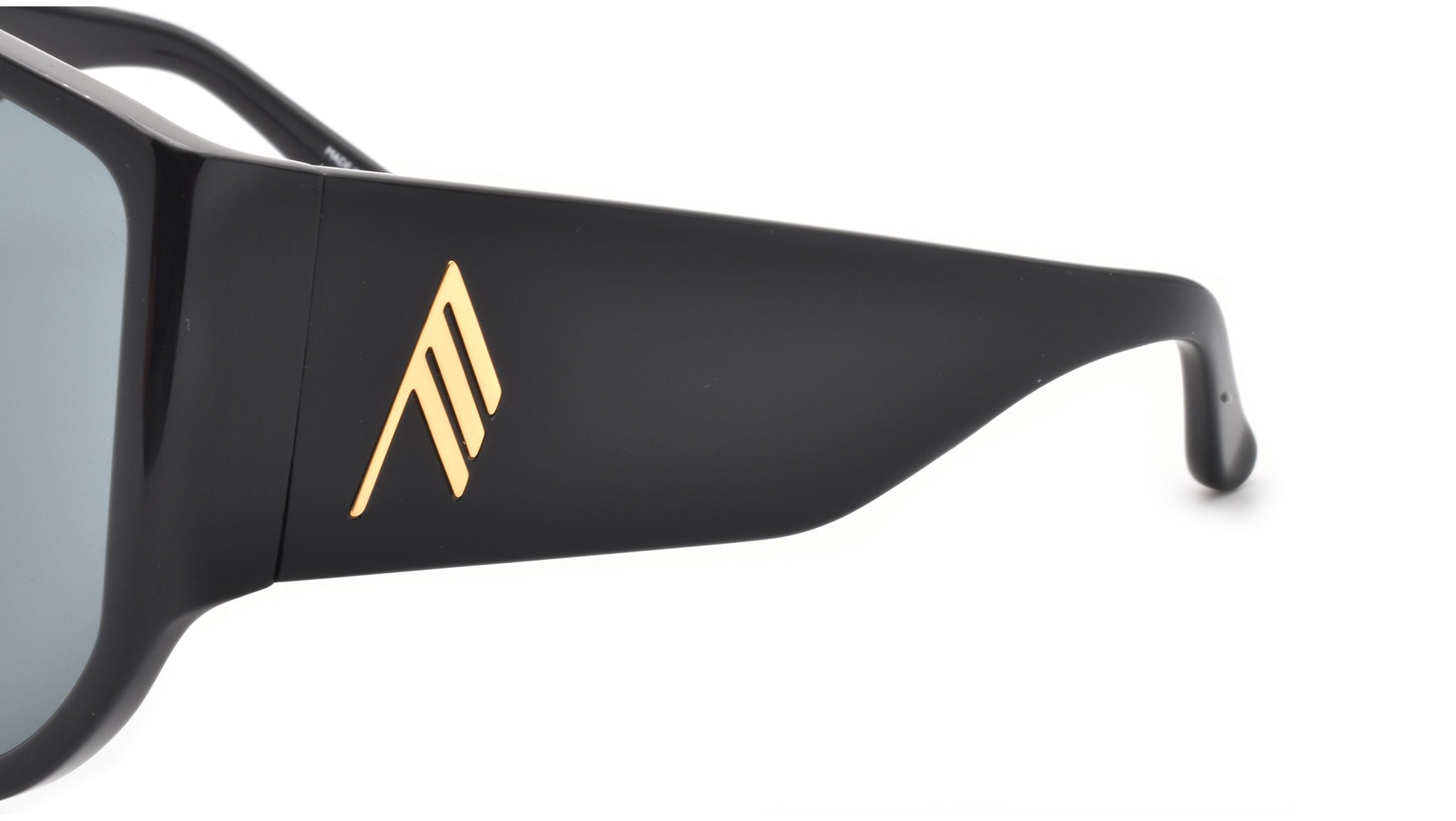 Embodying opulent Milano design, the Iman from the Linda Farrow collaboration with The Attico celebrates statement feminine design in an oversized shield silhouette in all black acetate, complete with gold logo detailing to the temples.