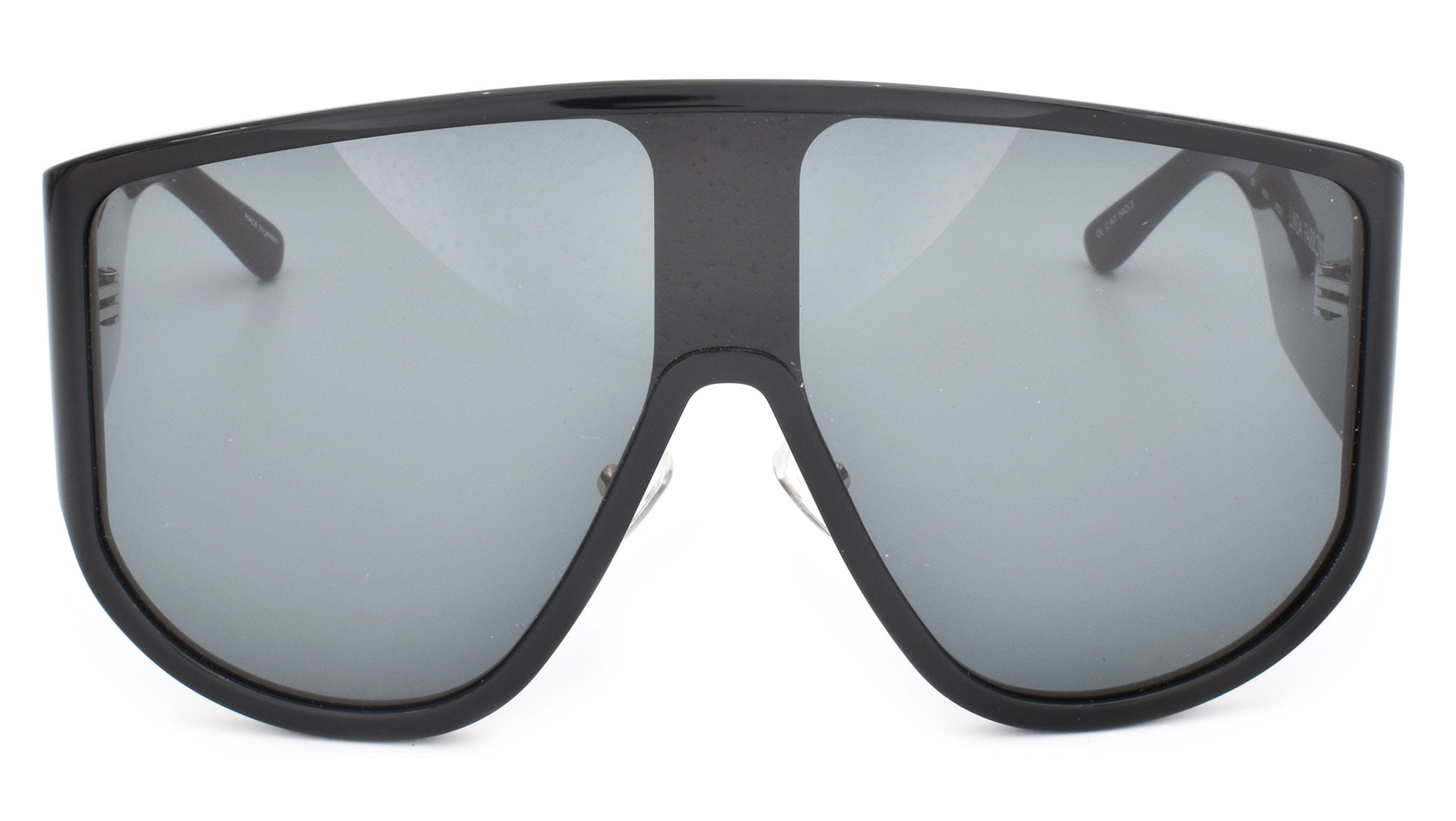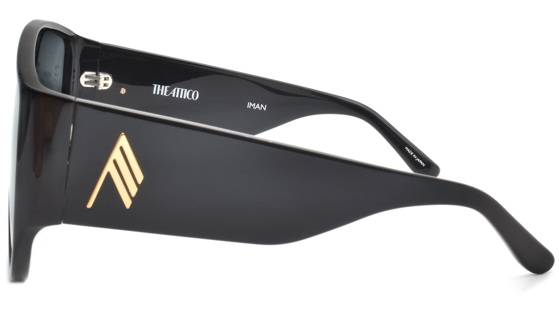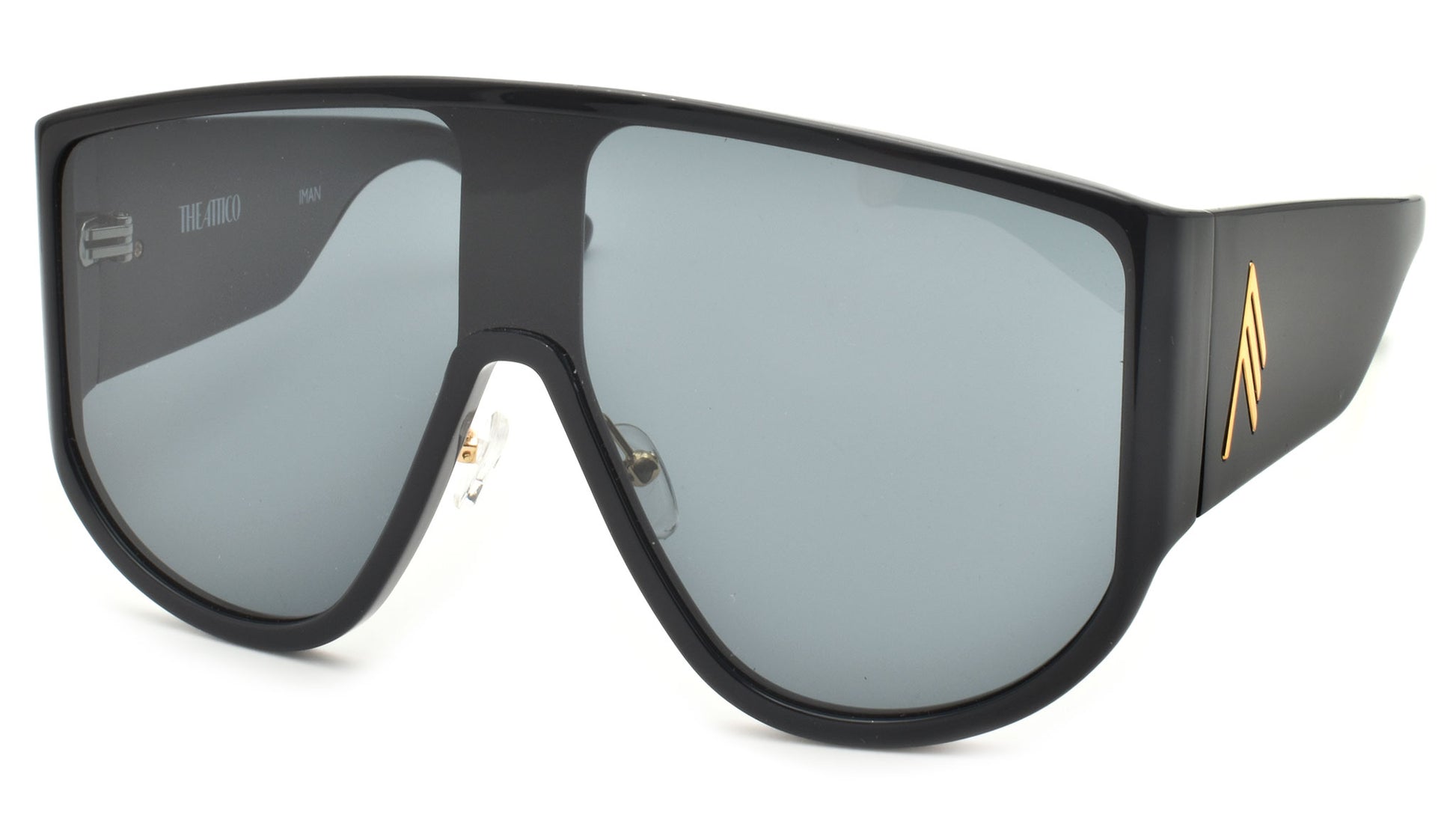 Embodying opulent Milano design, the Iman from the Linda Farrow collaboration with The Attico celebrates statement feminine design in an oversized shield silhouette in all black acetate, complete with gold logo detailing to the temples.