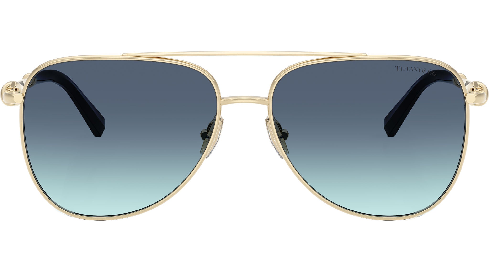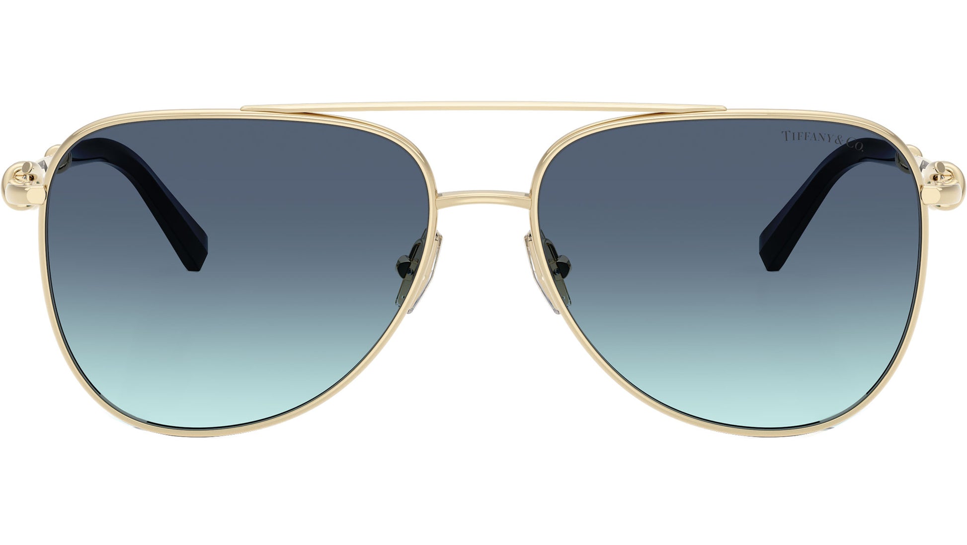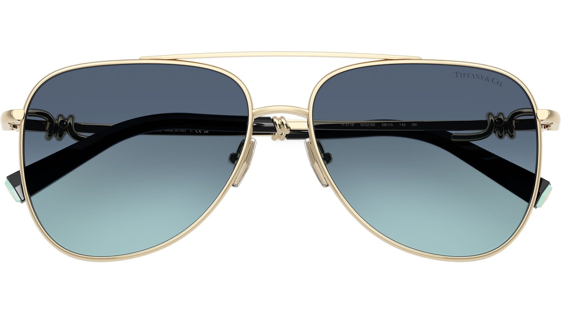 Tiffany sunglasses for women model TF3116 62029S featuring pale gold metal frame and azure gradient blue base 4 lenses. Adjustable nosepads. Frame line: Icons. Brand code: 0TF3116. Color code: 62029S. Authorised Tiffany Eyewear Online Reseller. Your glasses will come including the original case and accessories and will be covered by 12 month global warranty.