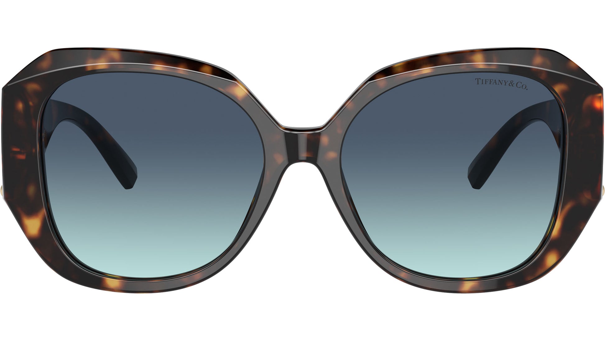Tiffany sunglasses for women model 0TF4207B featuring havana full rim acetate frame and base 4 azure gradient blue lenses. High bridge fit. Frame line: Icons. Brand code: 0TF4207B. Color code: 80159S. Authorised Tiffany Eyewear Online Reseller. Your glasses will come including the original case and accessories and will be covered by 12 month global warranty.