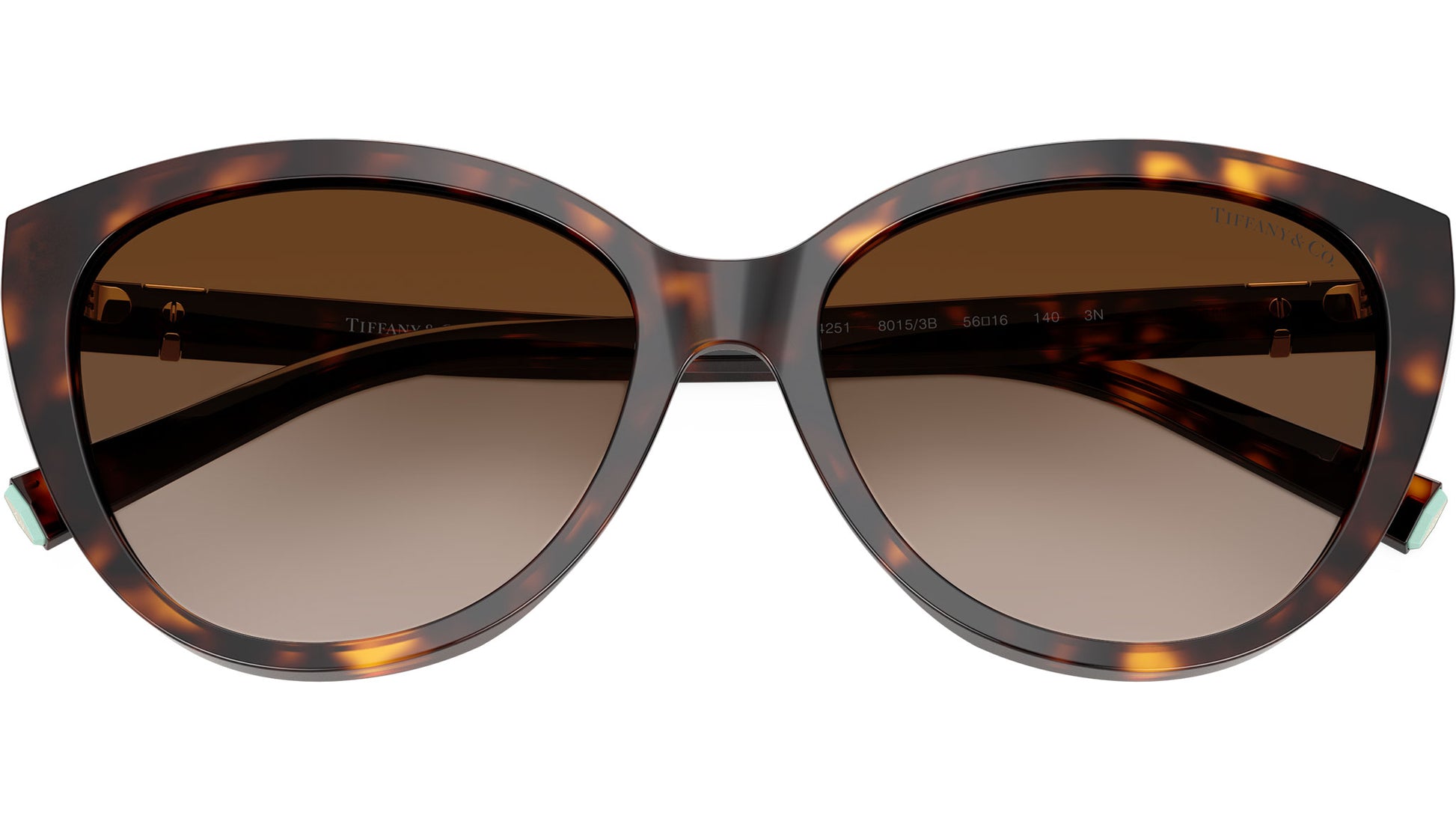 Tiffany sunglasses for women model TF4251 80153B featuring havana acetate frame and brown gradient base 4 lenses. High bridge fit. Frame line: Icons. Brand code: 0TF4251. Color code: 80153B. Authorised Tiffany Eyewear Online Reseller. Your glasses will come including the original case and accessories and will be covered by 12 month global warranty.