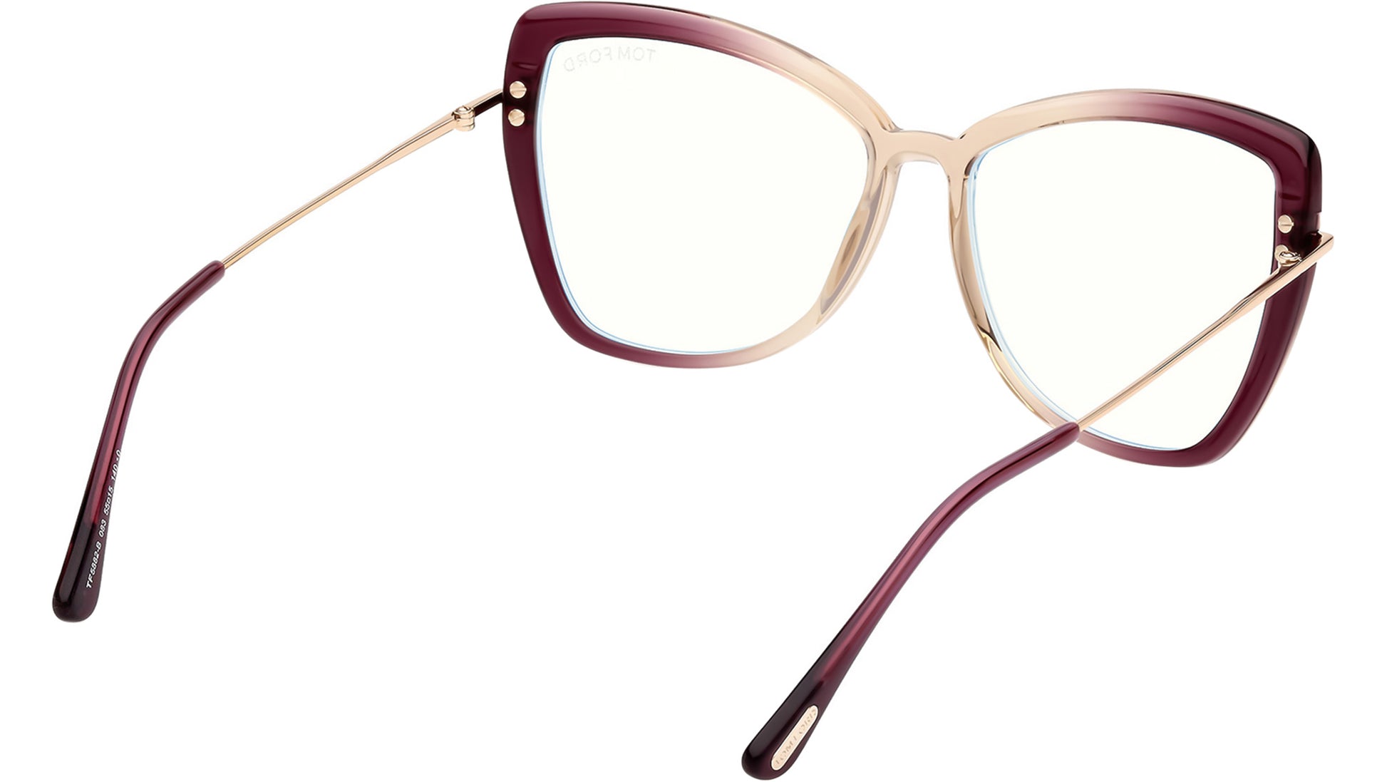 Tom Ford eyeglass frame for women model FT5882-B featuring volet gradient / shiny rose gold full rim acetate frame with demo lens. Frame line: Prescription Glasses. Brand code: FT5882. Color code: 083. Authorised Tom Ford Online Reseller. Your glasses will come including the original case and accessories and will be covered by 12 month global warranty.