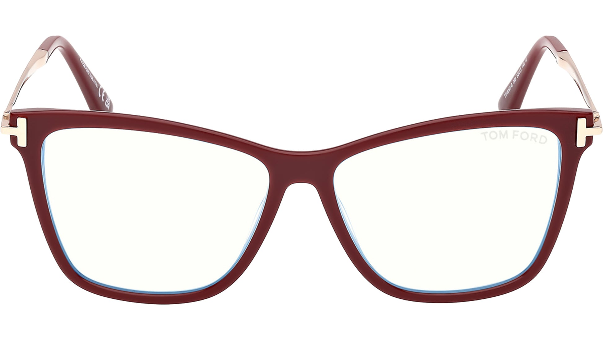 Tom Ford glasses for women model FT6097-B featuring shiny bordeaux full-rim acetate frame and transparent demo lenses. Brand code: 6097-B. Color code: 069. Authorised Tom Ford Eyewear Online Reseller. Your glasses will include the original case and accessories and will be covered by a 12-month global warranty.