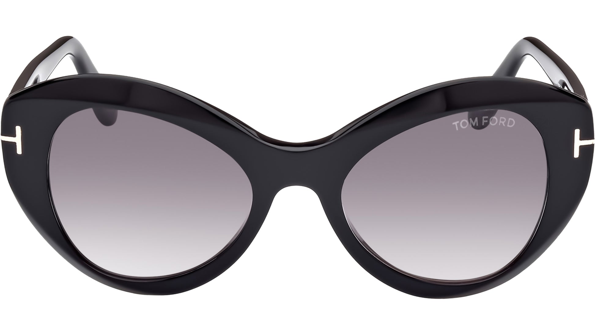 Tom Ford Guinevere sunglasses for women model FT1084 featuring shiny black full-rim acetate frame with gradient smoke lenses. Brand code: 1084. Color code: 01B. Authorised Tom Ford Online Reseller. Your glasses will include the original case and accessories and will be covered by a 12-month global warranty.