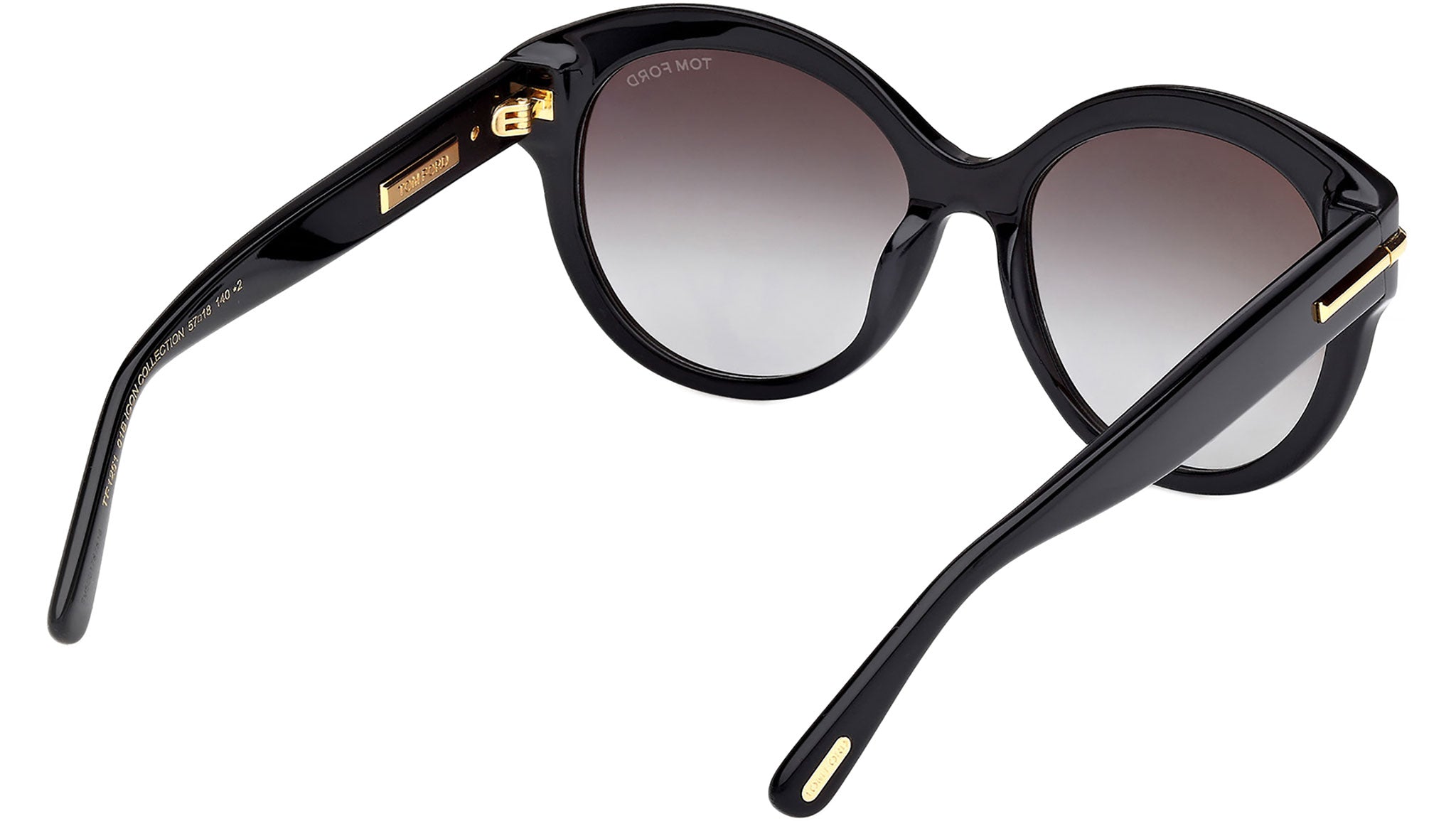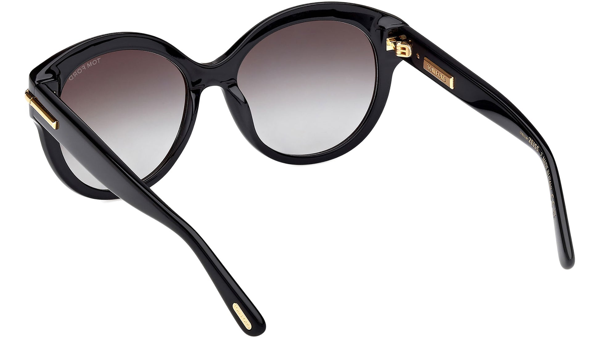 Tom Ford Icon sunglasses for women model FT1251 featuring shiny black full-rim acetate frame and gradient smoke lenses. Brand code: 1251. Color code: 01B. Authorised Tom Ford Online Reseller. Your glasses will include the original case and accessories and will be covered by a 12-month global warranty.
