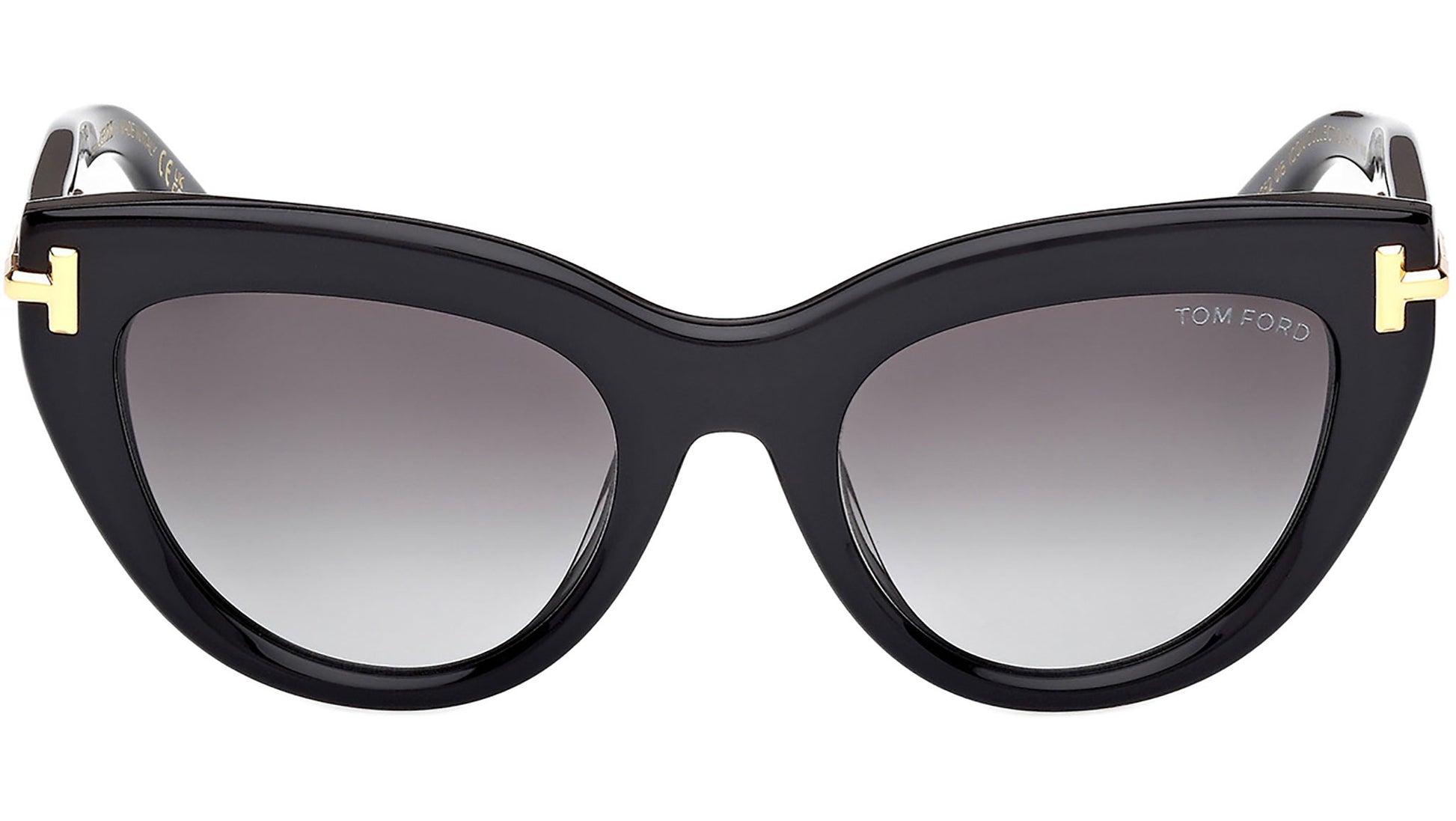 Tom Ford Icon sunglasses for women model FT1252 featuring shiny black full-rim acetate frame and gradient smoke lenses. Brand code: 1252. Color code: 01B. Authorised Tom Ford Online Reseller. Your glasses will include the original case and accessories and will be covered by a 12-month global warranty.