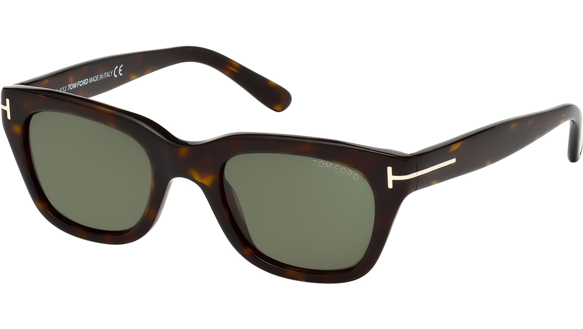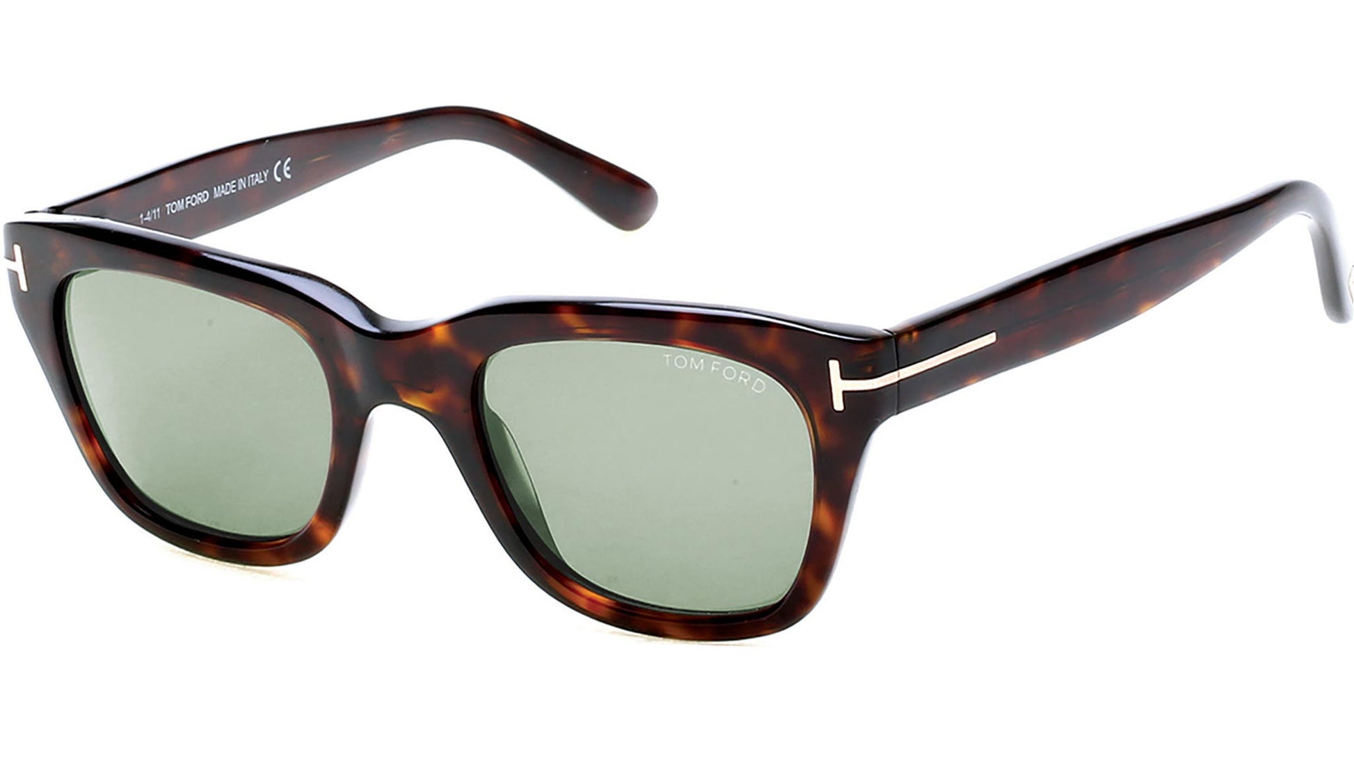 Tom Ford sunglasses for men model FT0237 featuring dark havana full-rim acetate frame and green lenses. Brand code: 0237. Color code: 52N. Authorised Tom Ford Online Reseller. Your glasses will include the original case and accessories and will be covered by a 12-month global warranty.