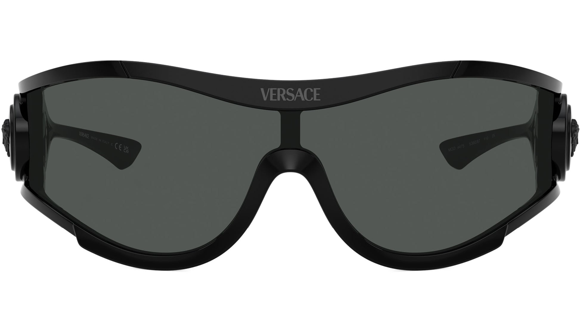 Versace unisex sunglasses model 4475 featuring black full rim injection frame and base 5 ellipto-cyindrical dark grey lenses. High bridge fit. Frame line: Iconic. Brand code: 0VE4475. Color code: 536087. Authorised Versace Eyewear Online Reseller. Your glasses will come including the original case and accessories and will be covered by 12 month global warranty.