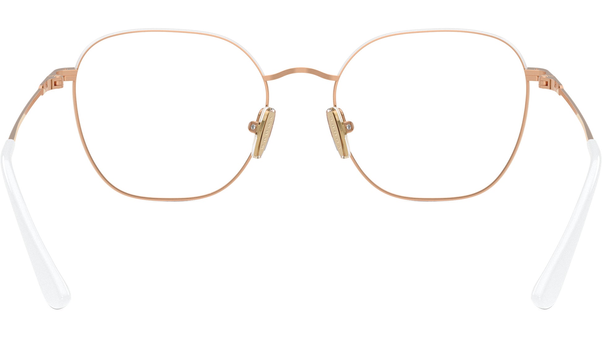 Vogue glasses for women model VO4178 5209 featuring white / rose gold metal frame and base 4 demo lens. Adjustable nosepads. Frame line: In Vogue. Brand code: 0VO4178. Color code: 5209. Authorised Vogue Eyewear Online Reseller. Your glasses will come including the original case and accessories and will be covered by 12 month global warranty.