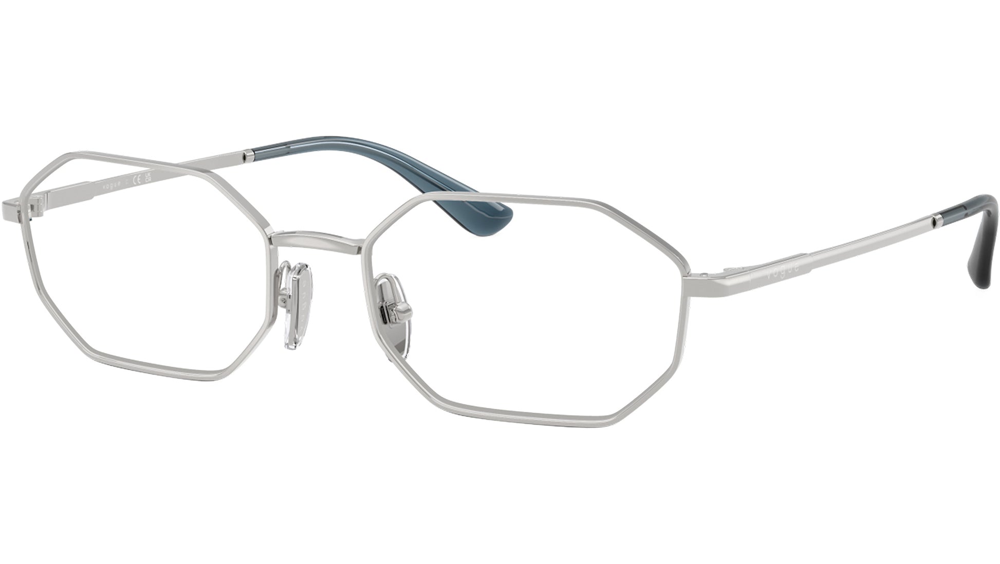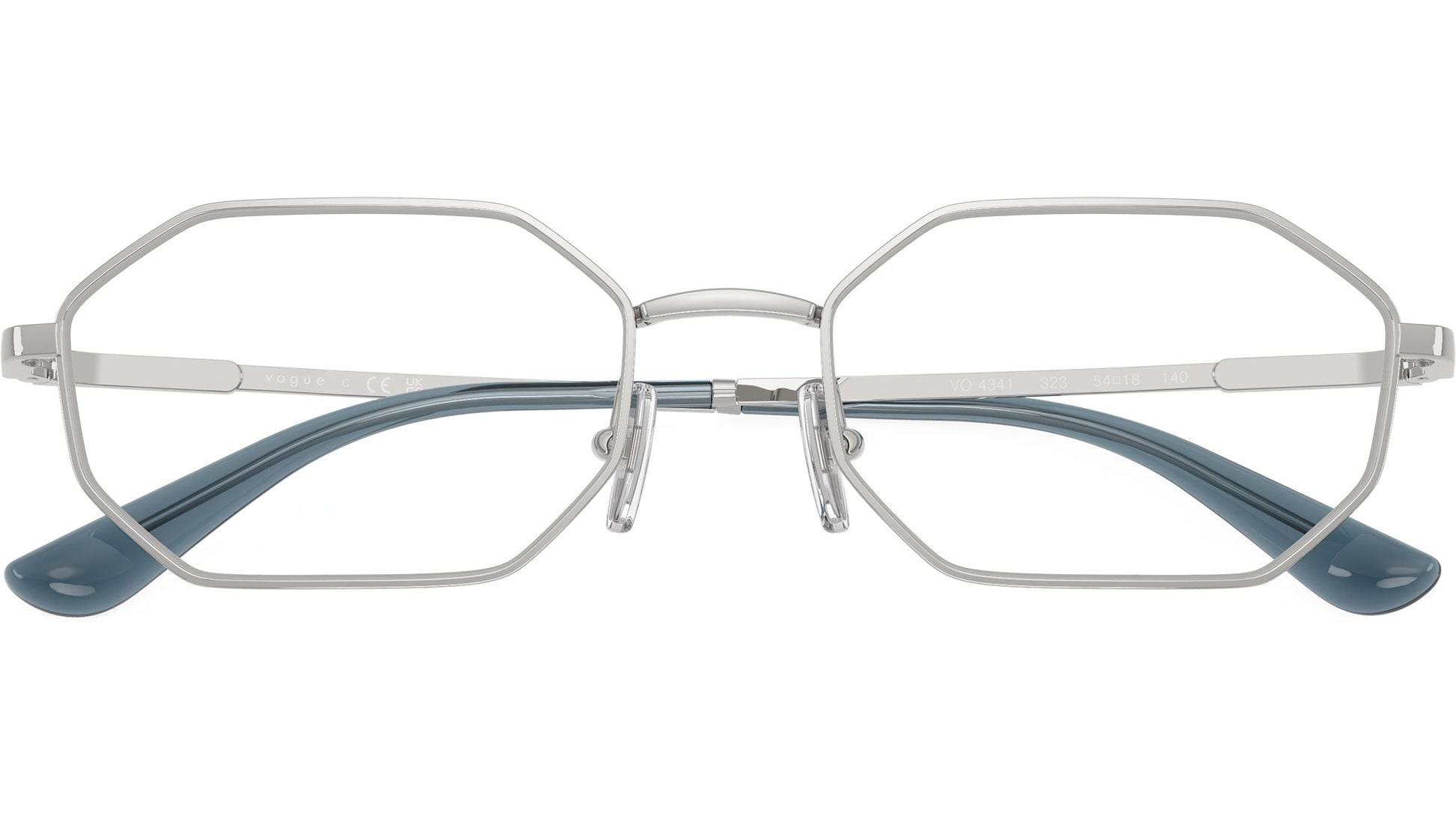 Vogue glasses for women model VO4341 323 featuring silver metal frame and base 4 demo lens. Adjustable nosepads. Frame line: In Vogue. Brand code: 0VO4341. Color code: 323. Authorised Vogue Eyewear Online Reseller. Your glasses will come including the original case and accessories and will be covered by 12 month global warranty.