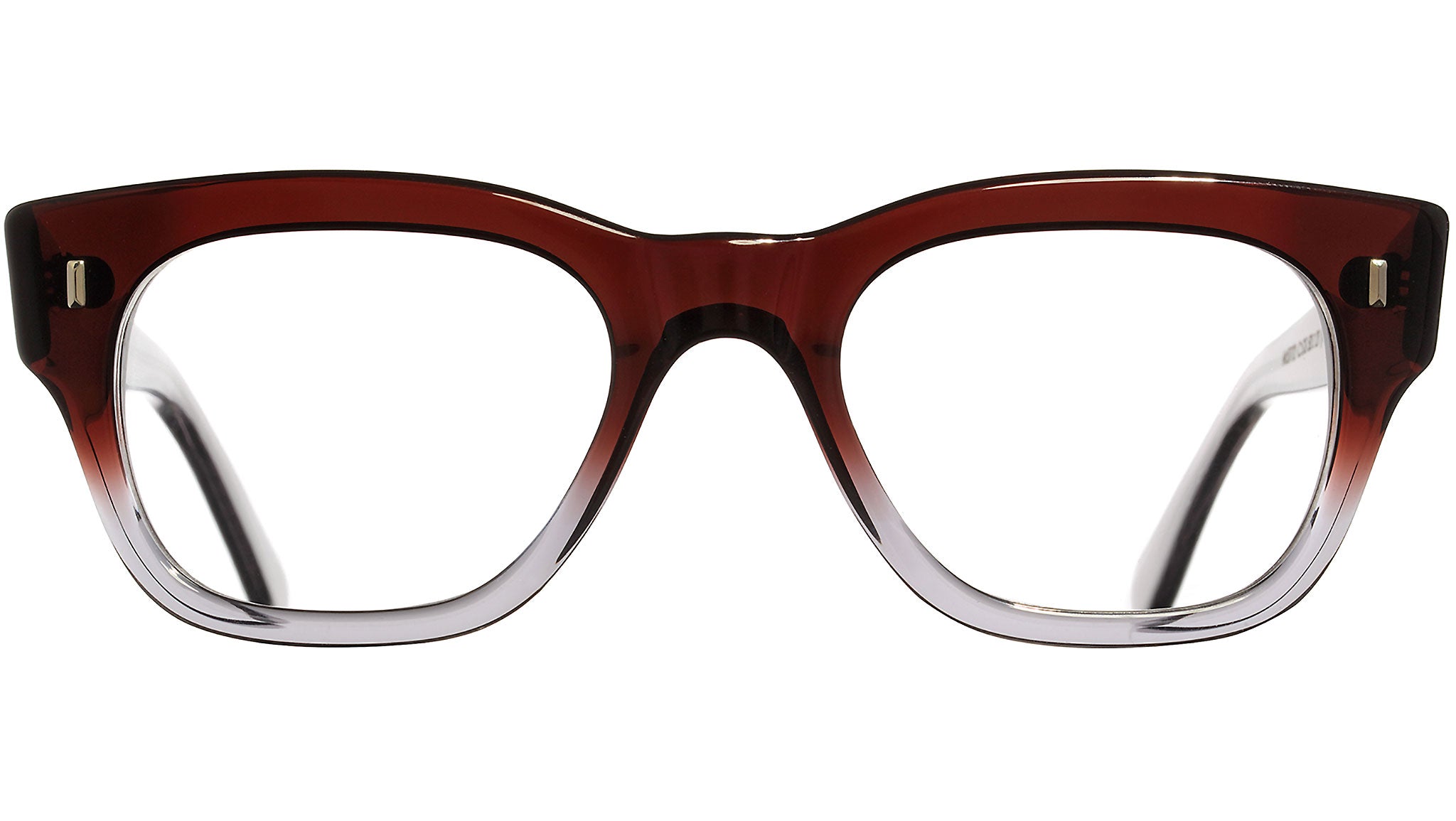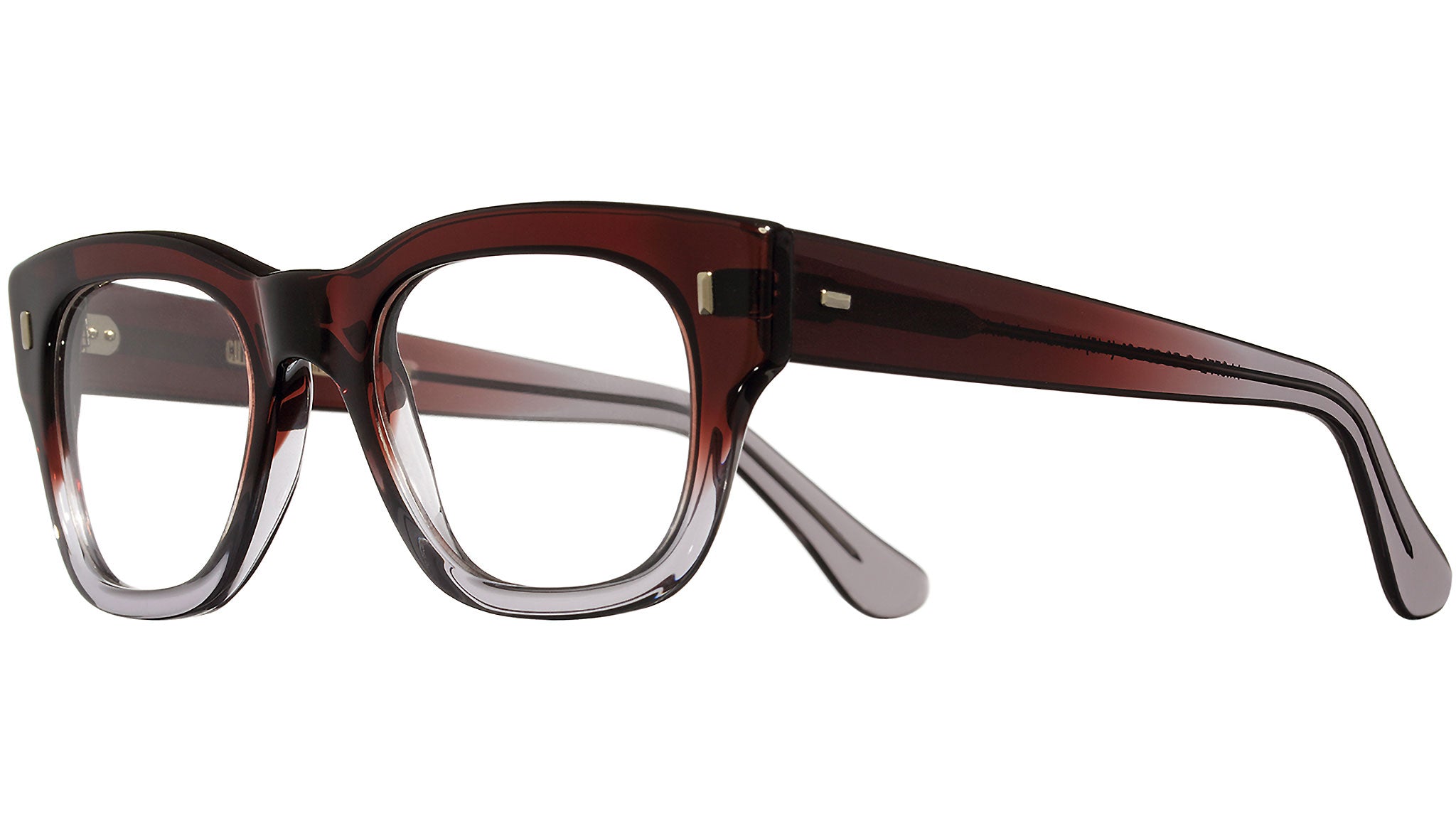 An iconic square optical frame featuring a heavy brow and tapered temple.