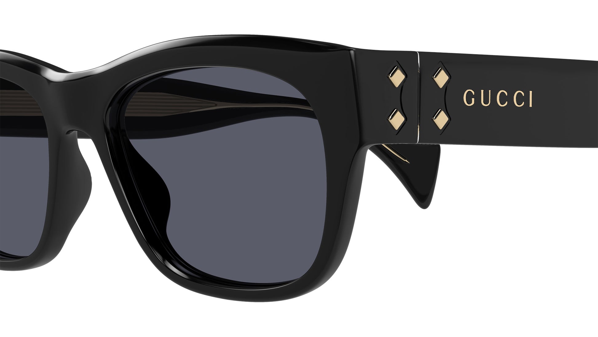 Gucci GG1706S 001 Solid Black Rectangular Sunglasses