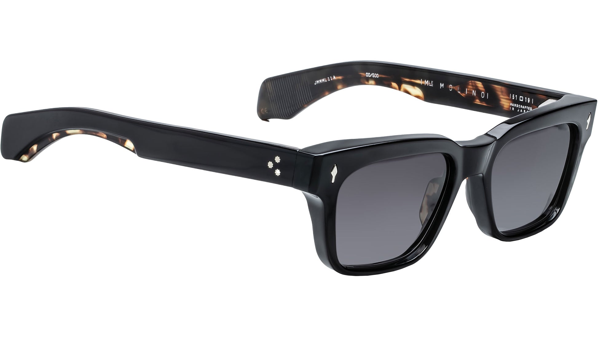 The Jacques Marie Mage Molino sunglasses are iconic rectangular frames inspired by the bold aesthetics of the 1960s, defined by their sculptural beveling and signature precious metal embellishments. A refined expression of rebellious sophistication, this design combines striking volume with balanced proportions, resulting in a handcrafted heirloom that embodies sensuality and poetic craftsmanship.