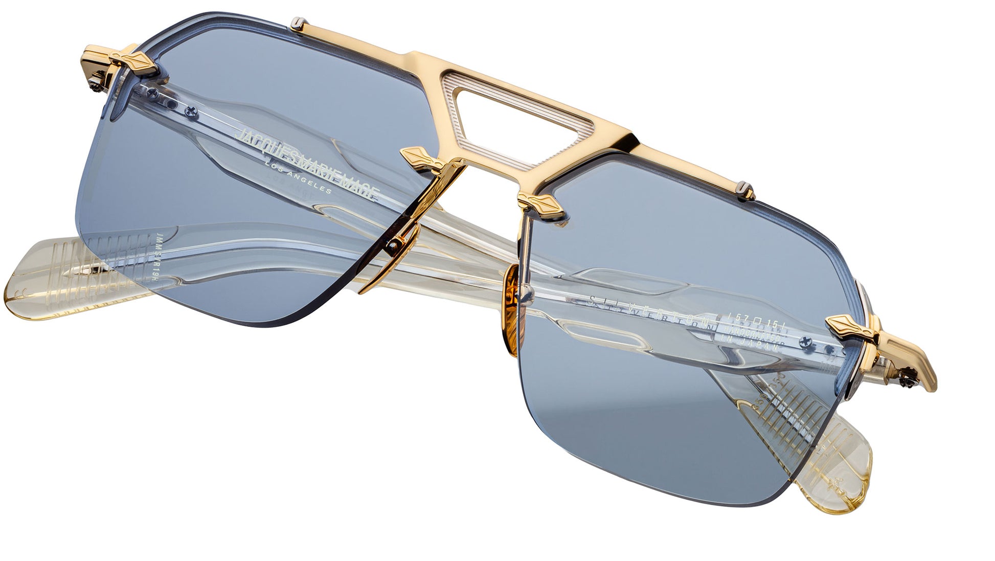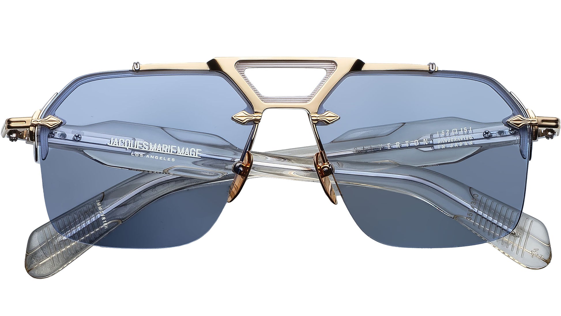 Drawing inspiration from both the rugged wilderness and the vibrant urban landscape, the Silverton from Jacques Marie Mage's Rimless Series embodies exceptional artistry and meticulous craftsmanship. These remarkable frames showcase a unique combination of a connected nose-and-brow bridge adorned with contrasting precious metal accents and sculpted acetate temples that incorporate our distinctive wirecore designs.