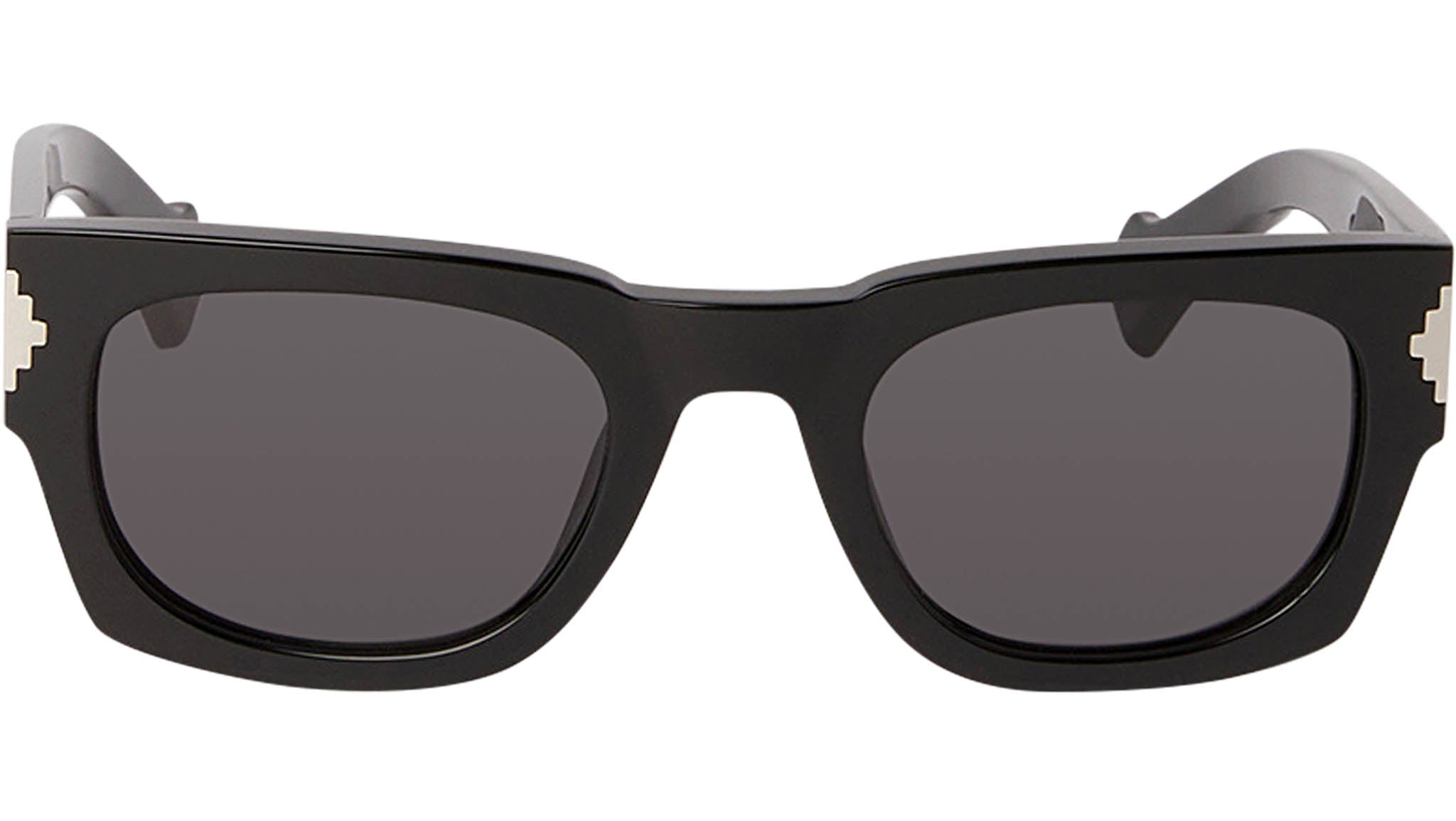 Ett spel med geometrier, en form i en form. Marcelo Burlon County i Milano Calafates ursprungliga ovala glas är inramade av en fyrkantig siluett moderniserad med förlängda sidor. Metallloggan inbäddad på ramens sidor och de okonventionella ändspetsarna sätter en sista intressant touch till modellen.