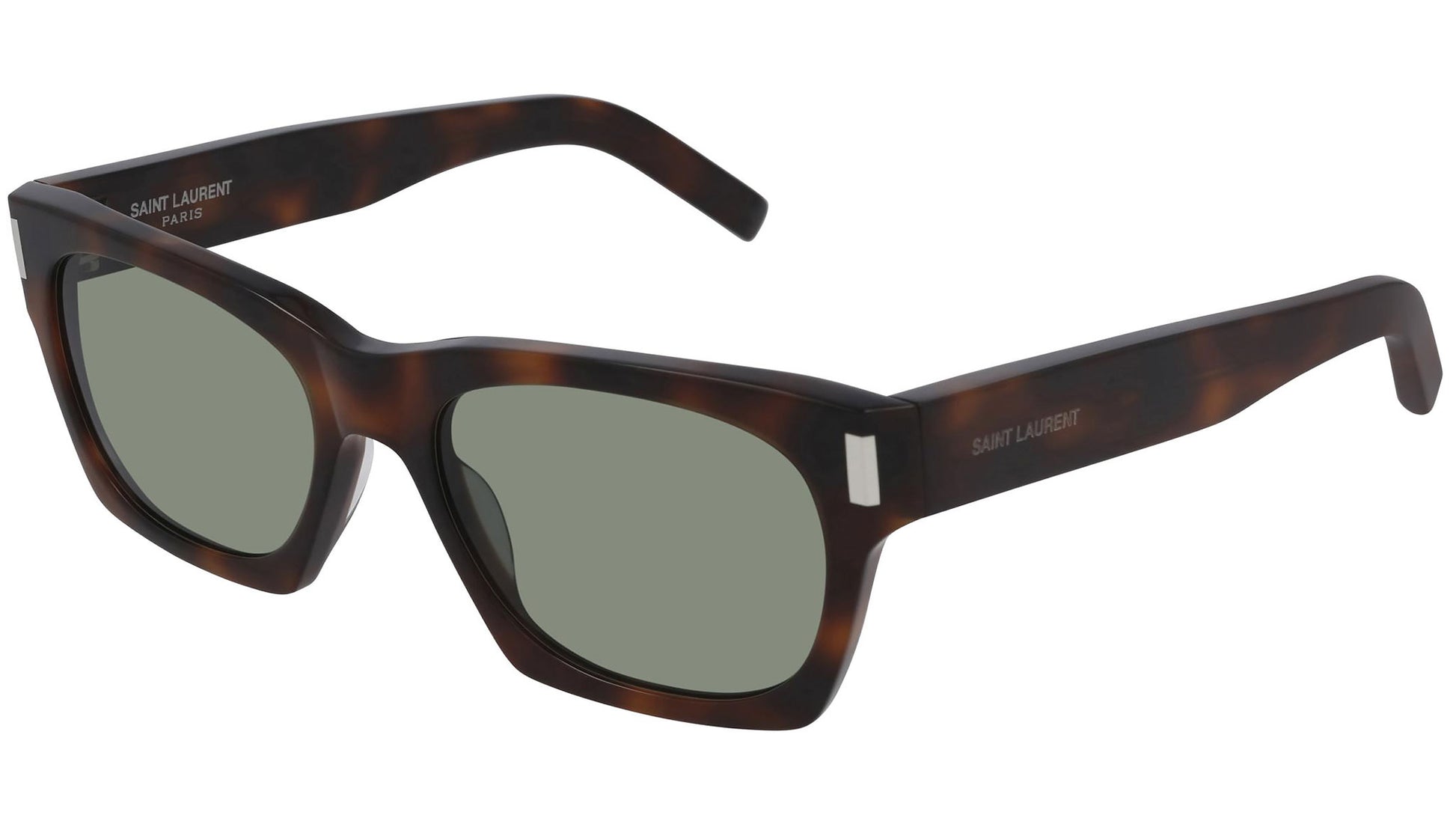 SL 402 003 solglasögon från haute couture Yves Saint Laurent, med glänsande medium havana båge och solid grön lins. Saint Laurent Eyewear representerar till fullo husets distinkta modeattityd: tidlös stil och modern lyx. Kollektionerna är ett fint urval av unika produkter som utmärks av en enastående kvalitet.