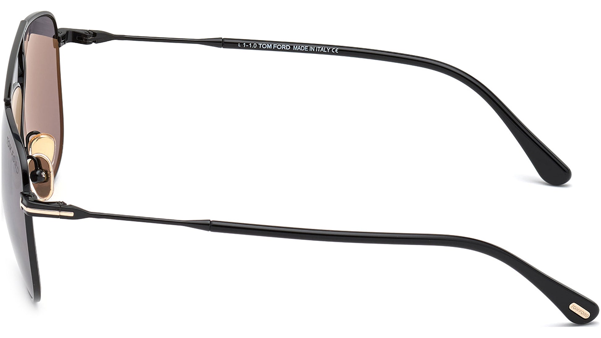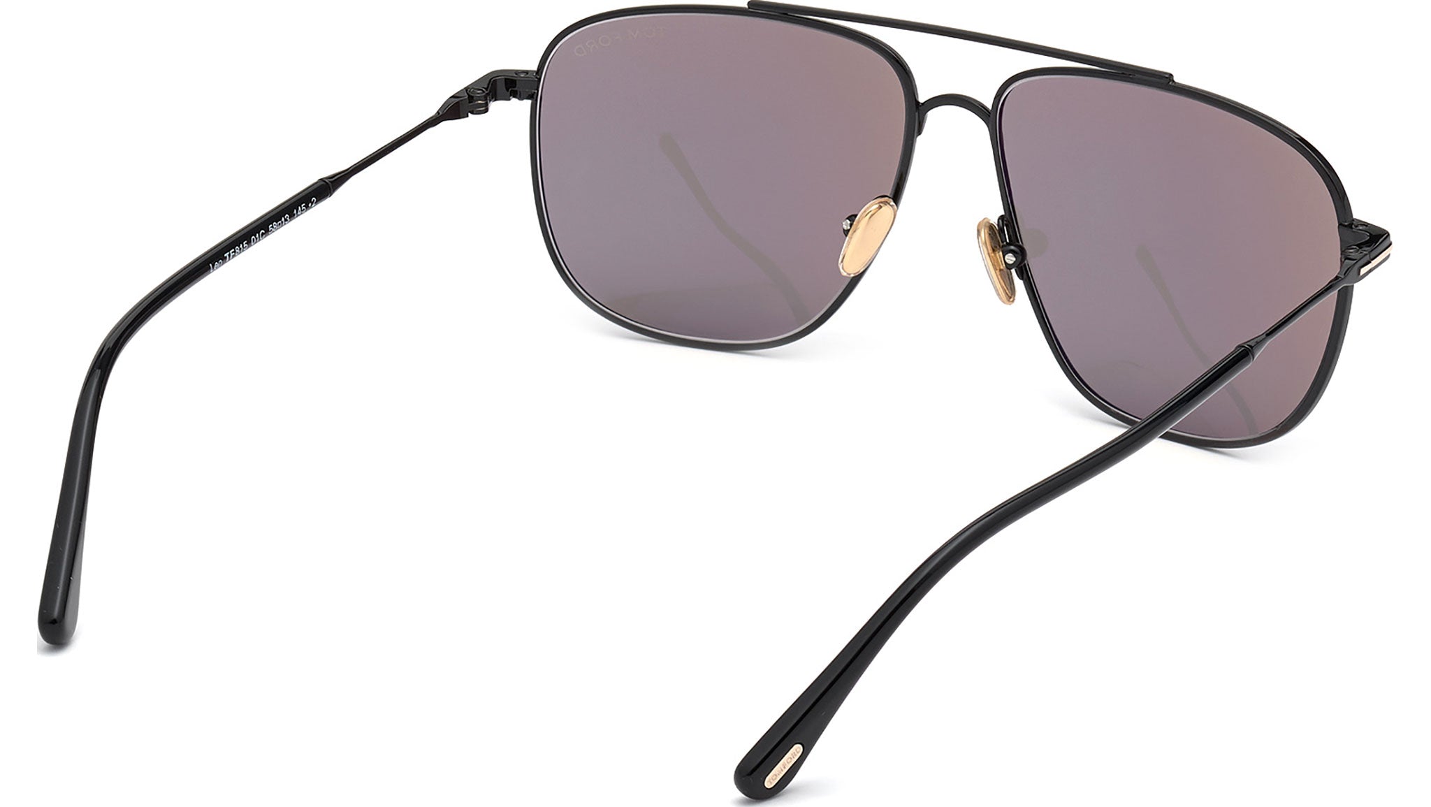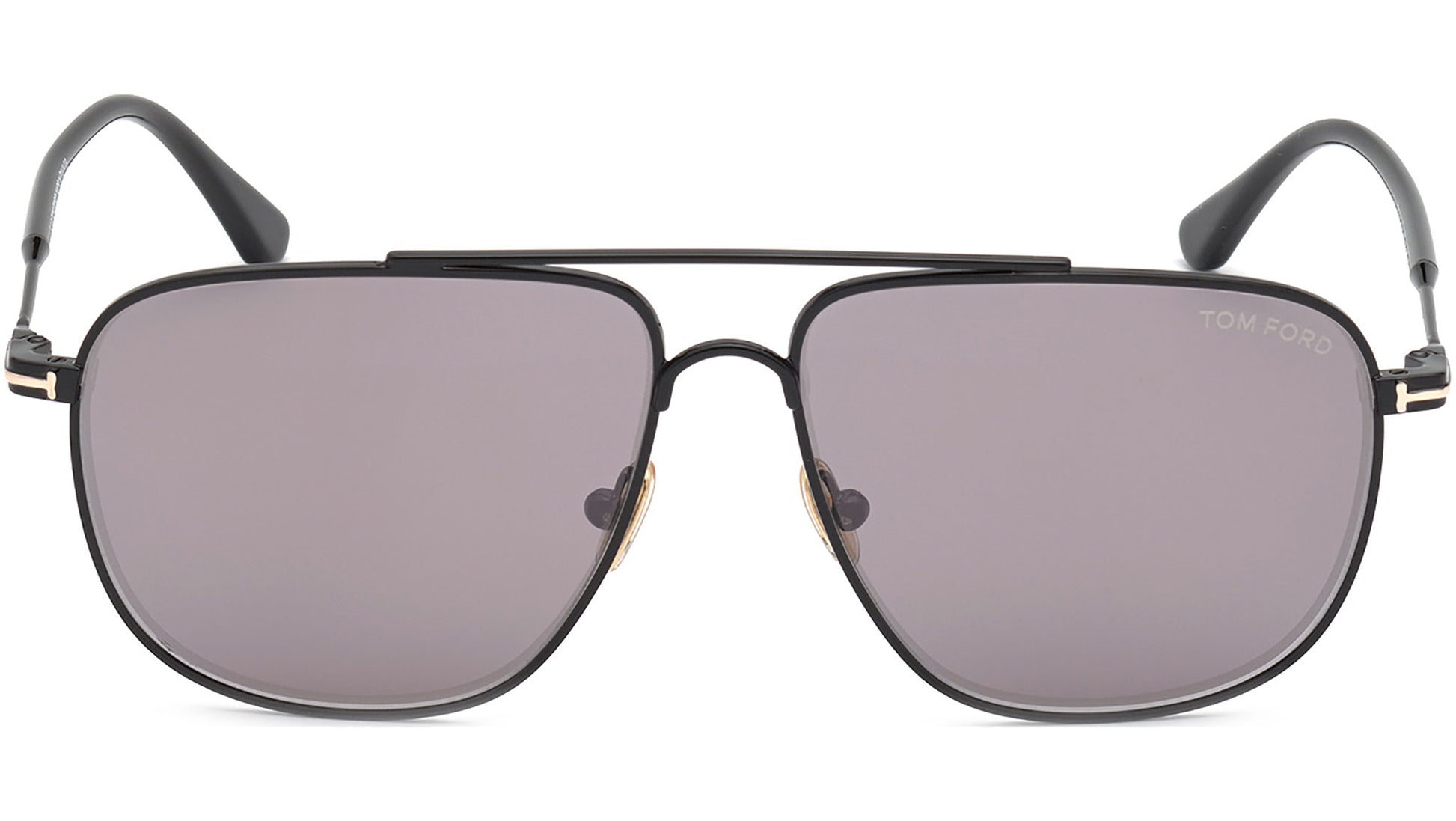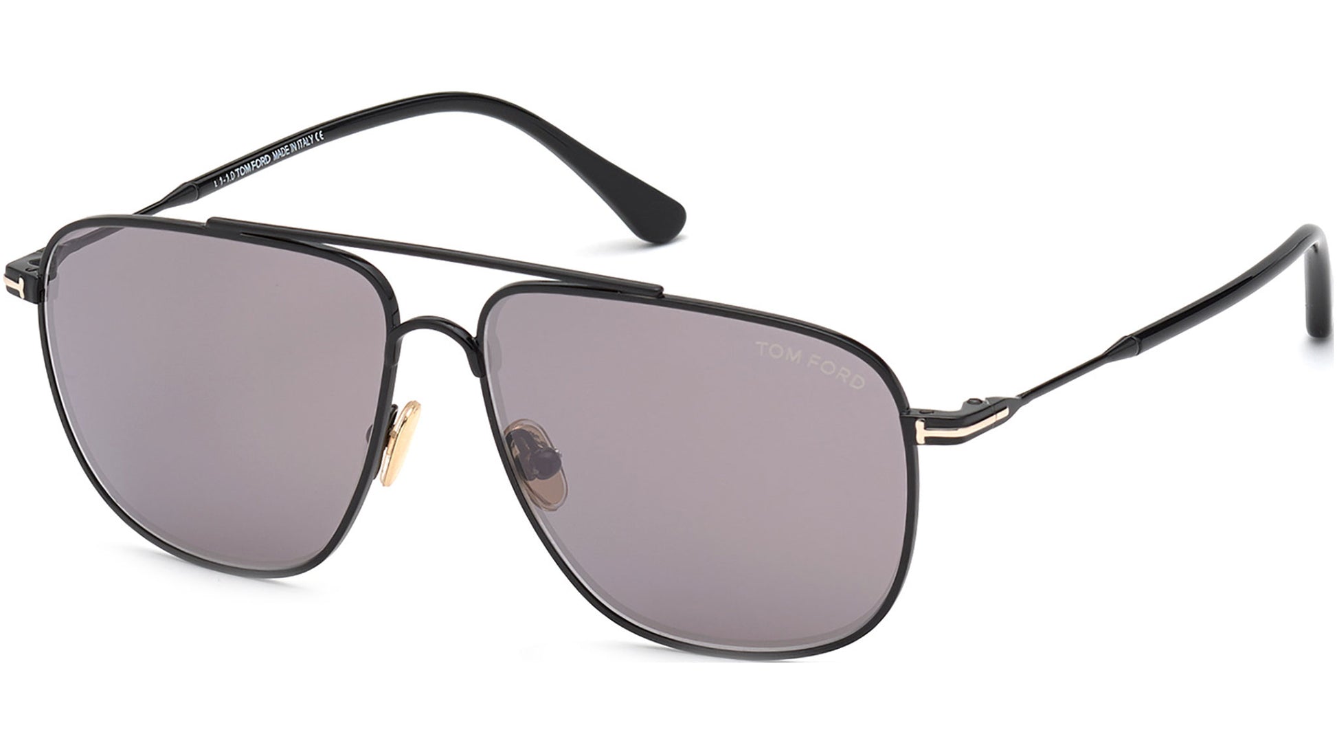 Tom Ford Len sunglasses model FT0815 01C featuring shiny black frame and grey mirror lens.